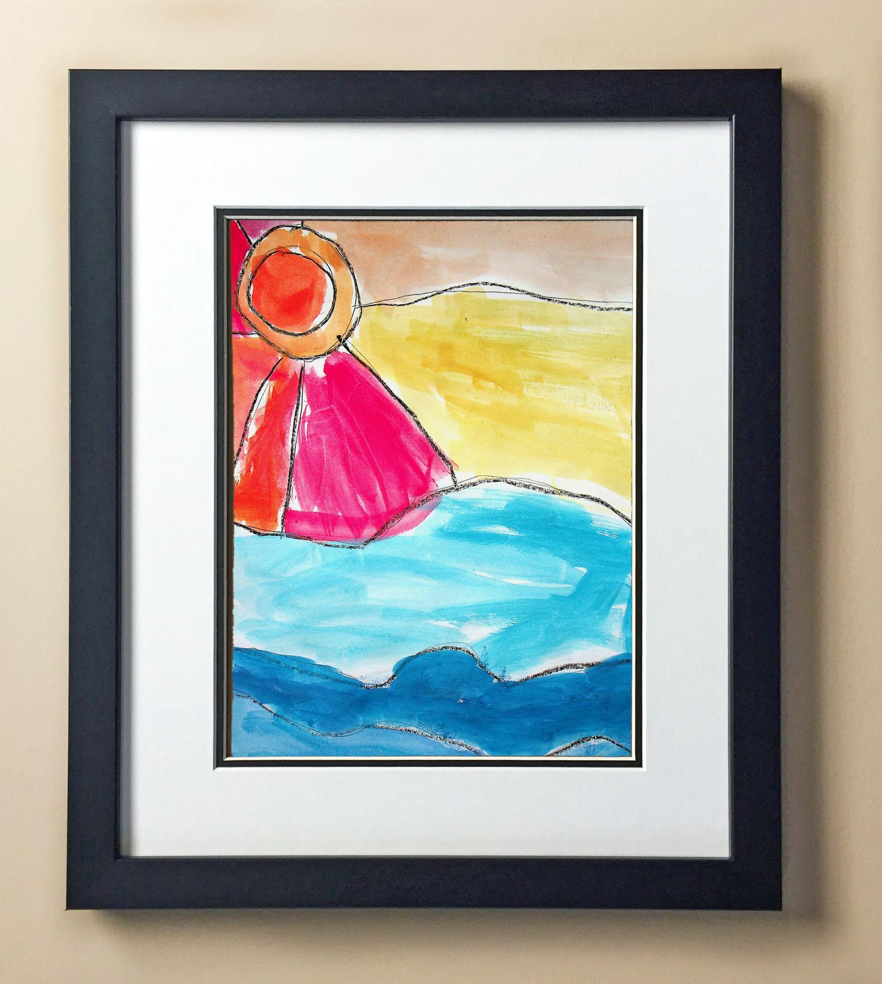 Included with the purchase is the Students Artwork, Frame, double matboard, shatter proof plexiglass, and a ready to hang backerboard with turnbuttons