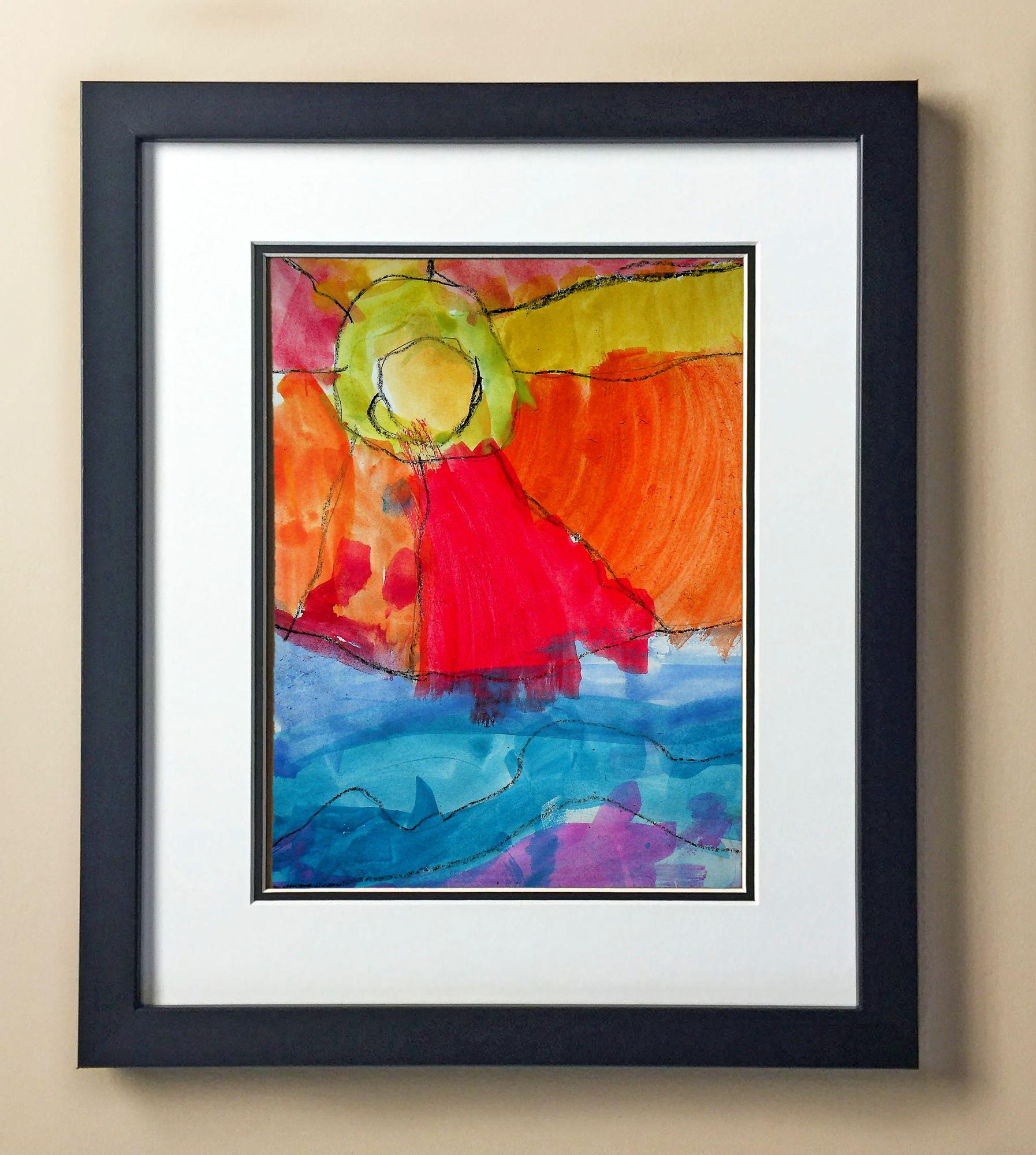 Included with the purchase is the Students Artwork, Frame, double matboard, shatter proof plexiglass, and a ready to hang backerboard with turnbuttons