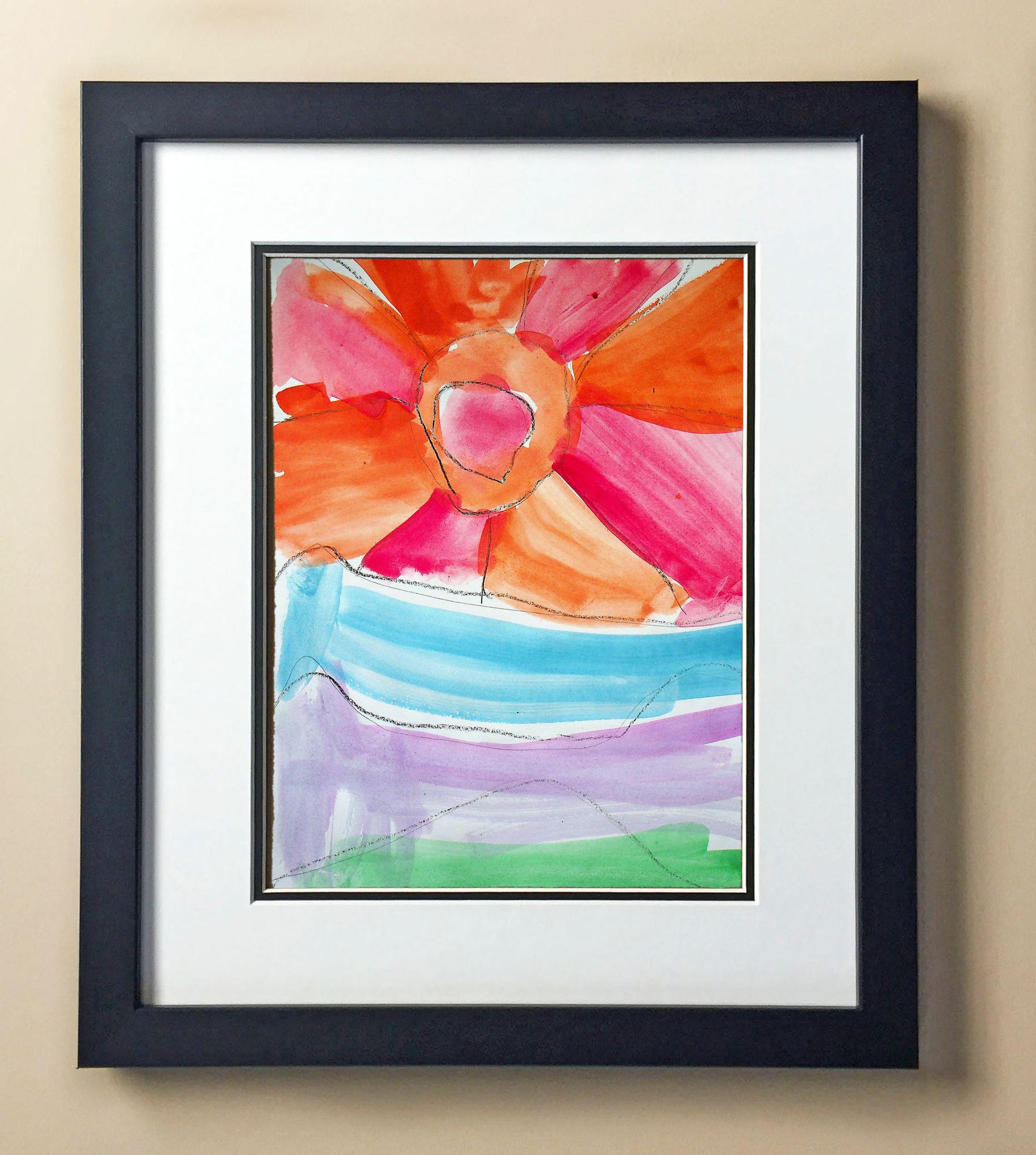 Included with the purchase is the Students Artwork, Frame, double matboard, shatter proof plexiglass, and a ready to hang backerboard with turnbuttons