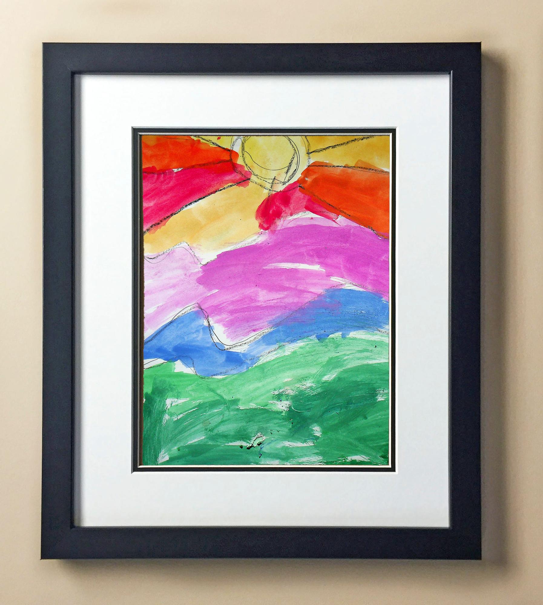 Included with the purchase is the Students Artwork, Frame, double matboard, shatter proof plexiglass, and a ready to hang backerboard with turnbuttons