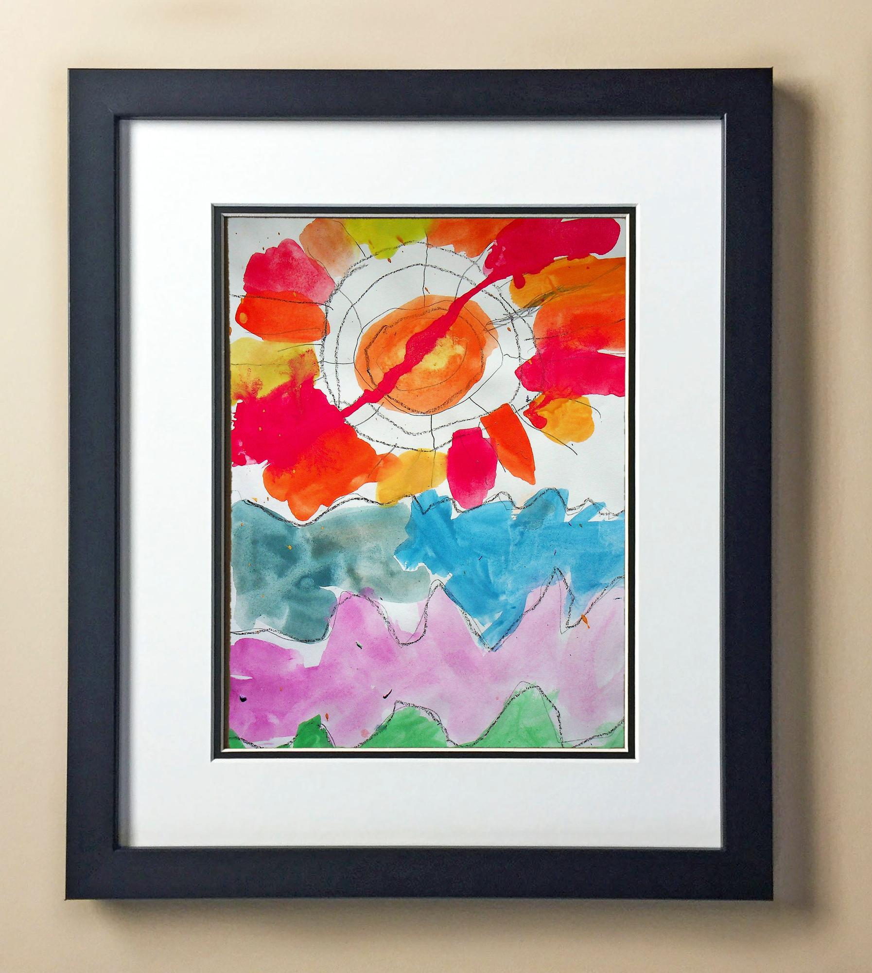 Included with the purchase is the Students Artwork, Frame, double matboard, shatter proof plexiglass, and a ready to hang backerboard with turnbuttons