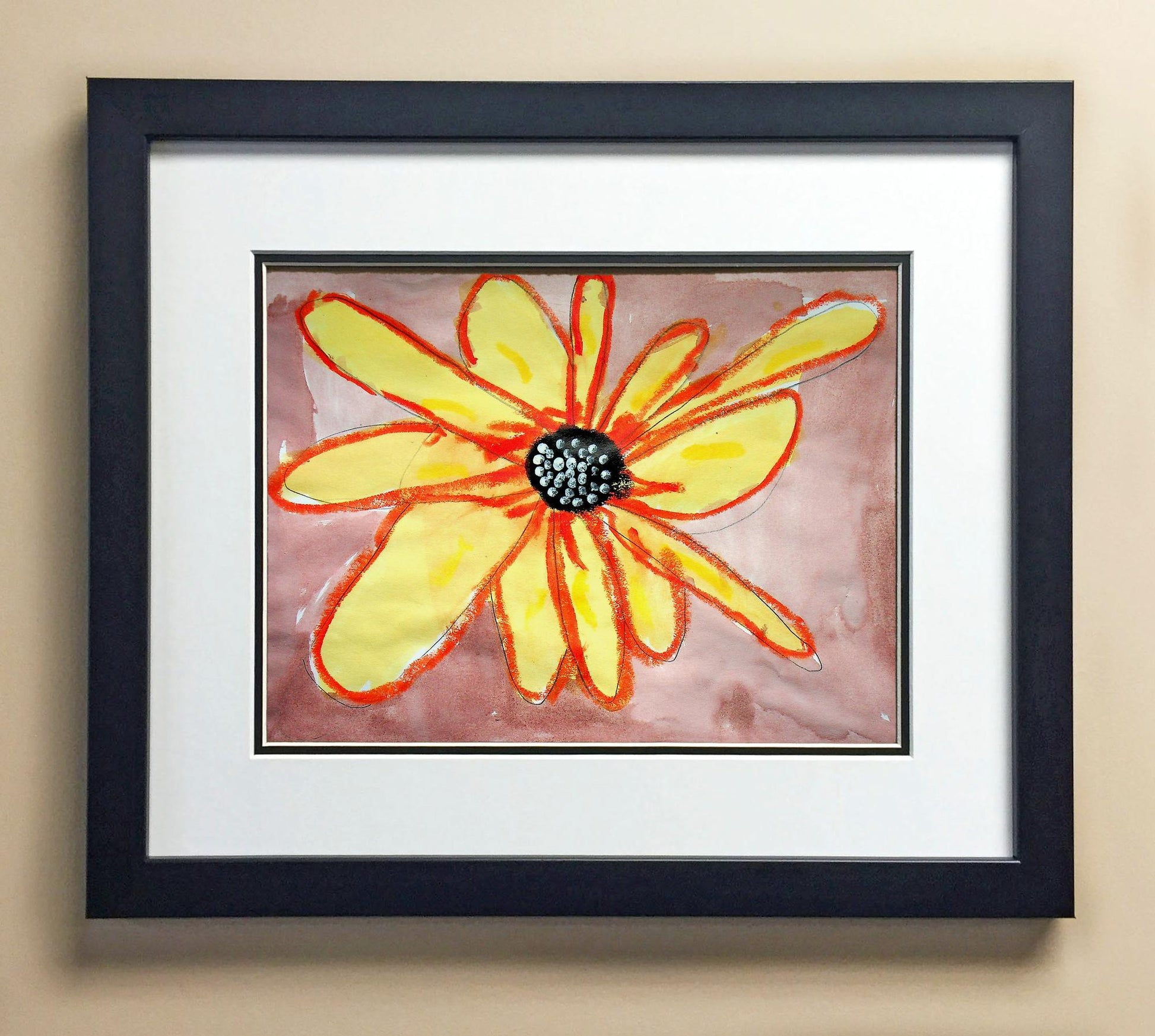 Included with the purchase is the Students Artwork, Frame, double matboard, shatter proof plexiglass, and a ready to hang backerboard with turnbuttons
