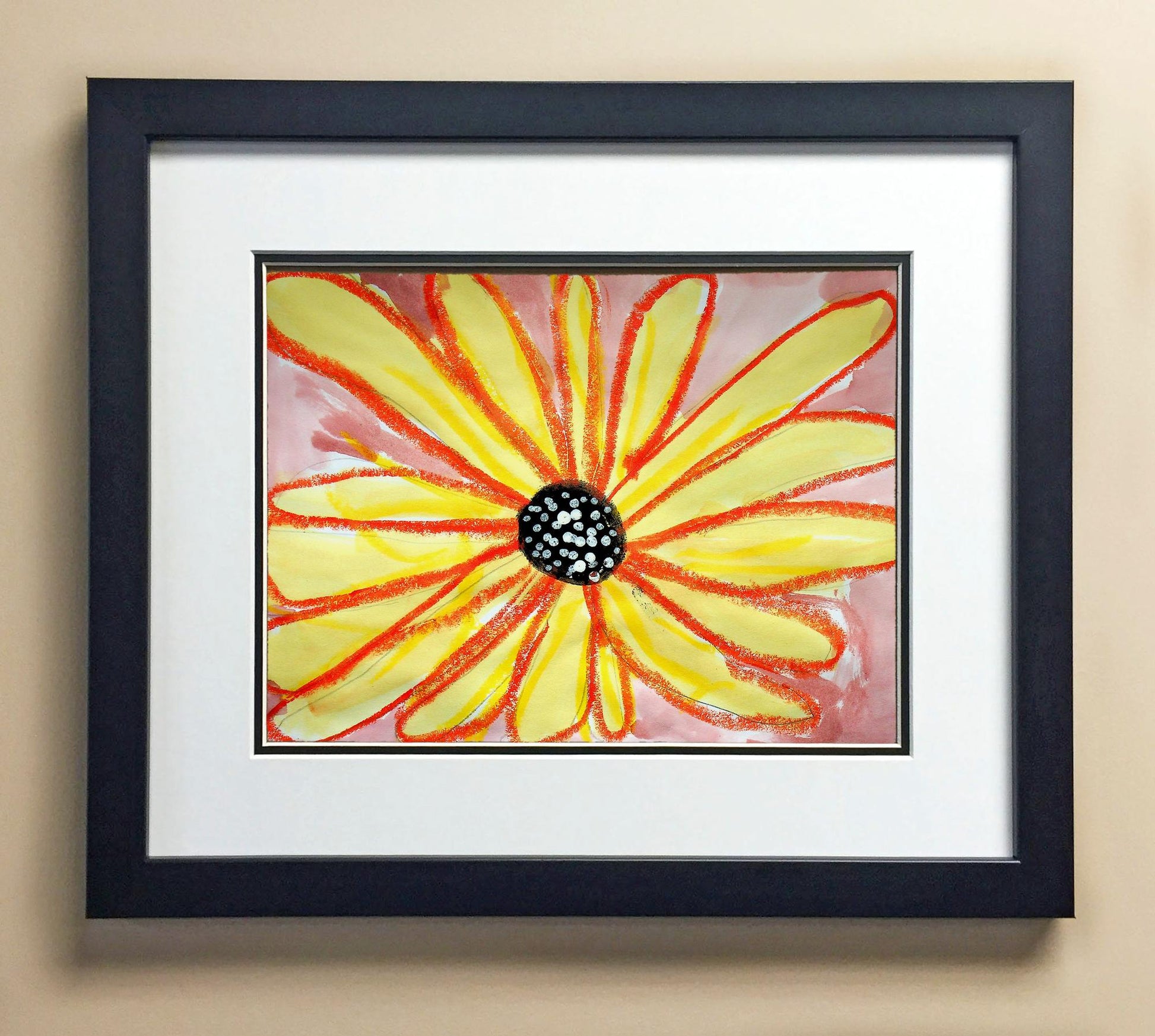 Included with the purchase is the Students Artwork, Frame, double matboard, shatter proof plexiglass, and a ready to hang backerboard with turnbuttons
