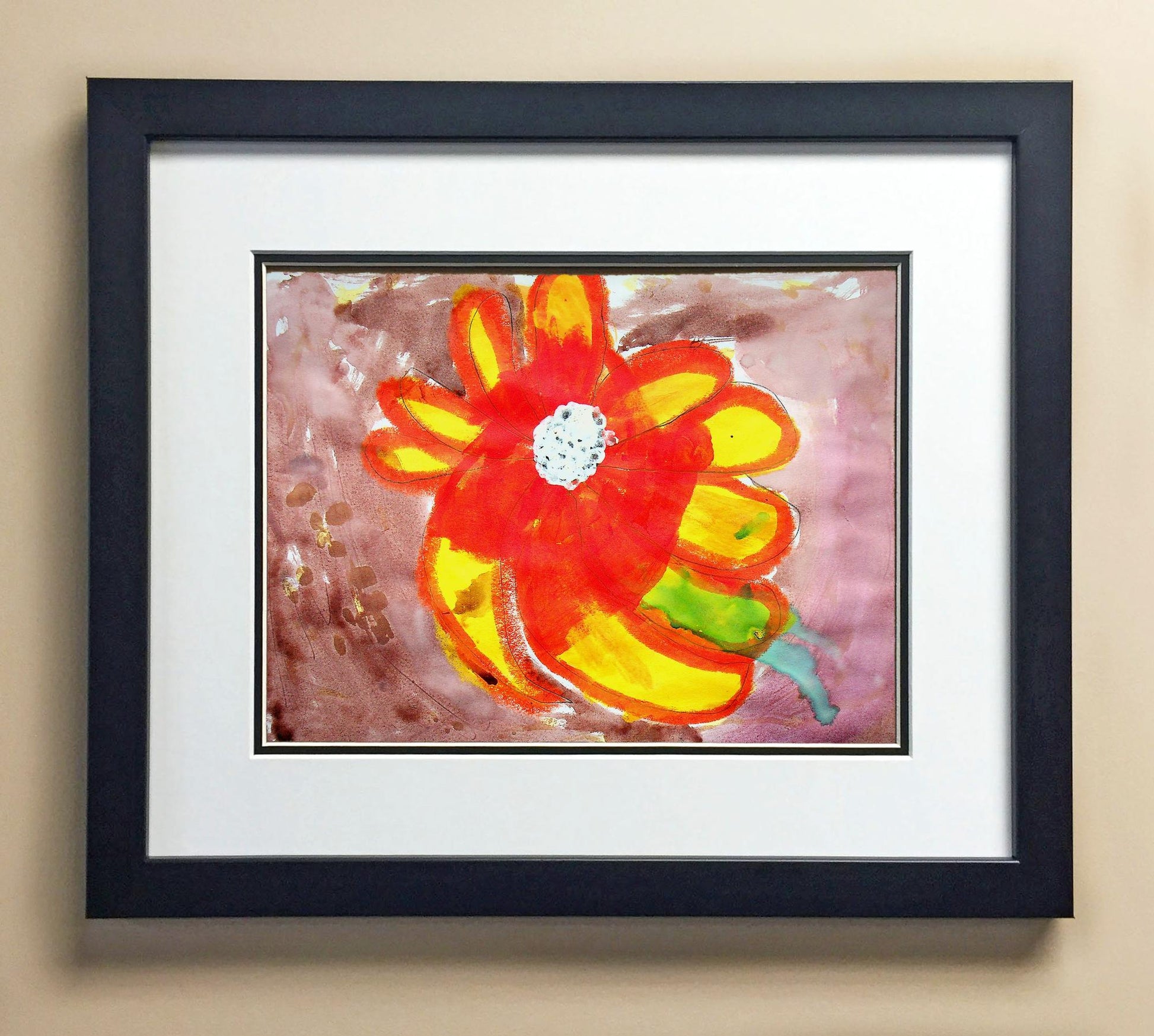 Included with the purchase is the Students Artwork, Frame, double matboard, shatter proof plexiglass, and a ready to hang backerboard with turnbuttons