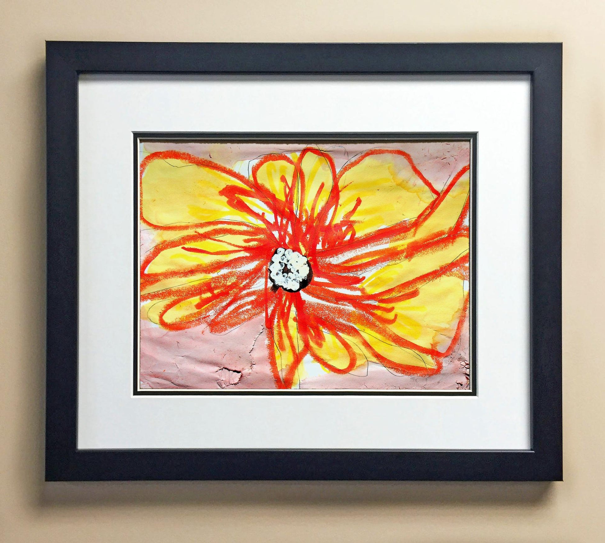 Included with the purchase is the Students Artwork, Frame, double matboard, shatter proof plexiglass, and a ready to hang backerboard with turnbuttons