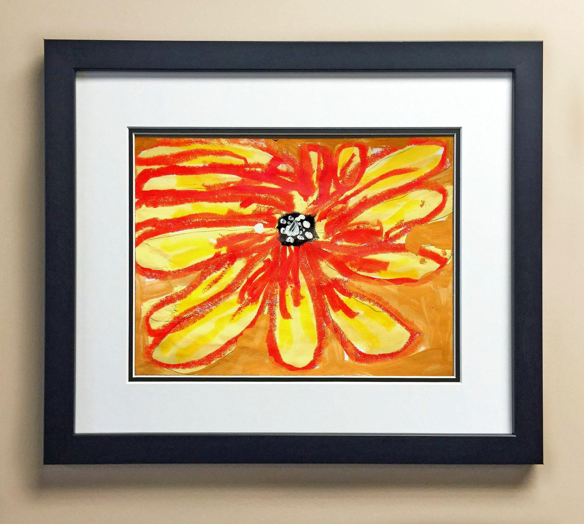 Included with the purchase is the Students Artwork, Frame, double matboard, shatter proof plexiglass, and a ready to hang backerboard with turnbuttons