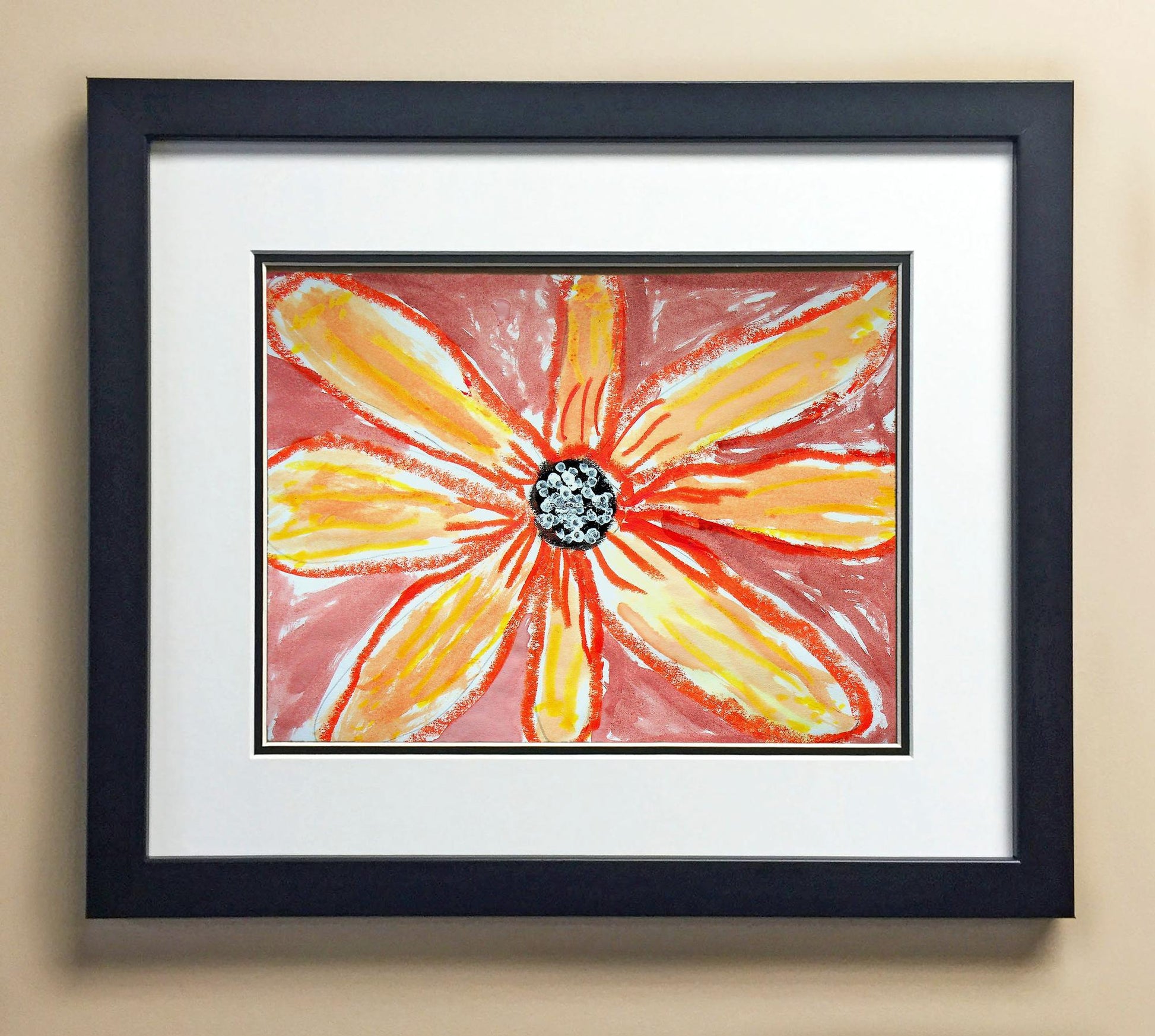 Included with the purchase is the Students Artwork, Frame, double matboard, shatter proof plexiglass, and a ready to hang backerboard with turnbuttons