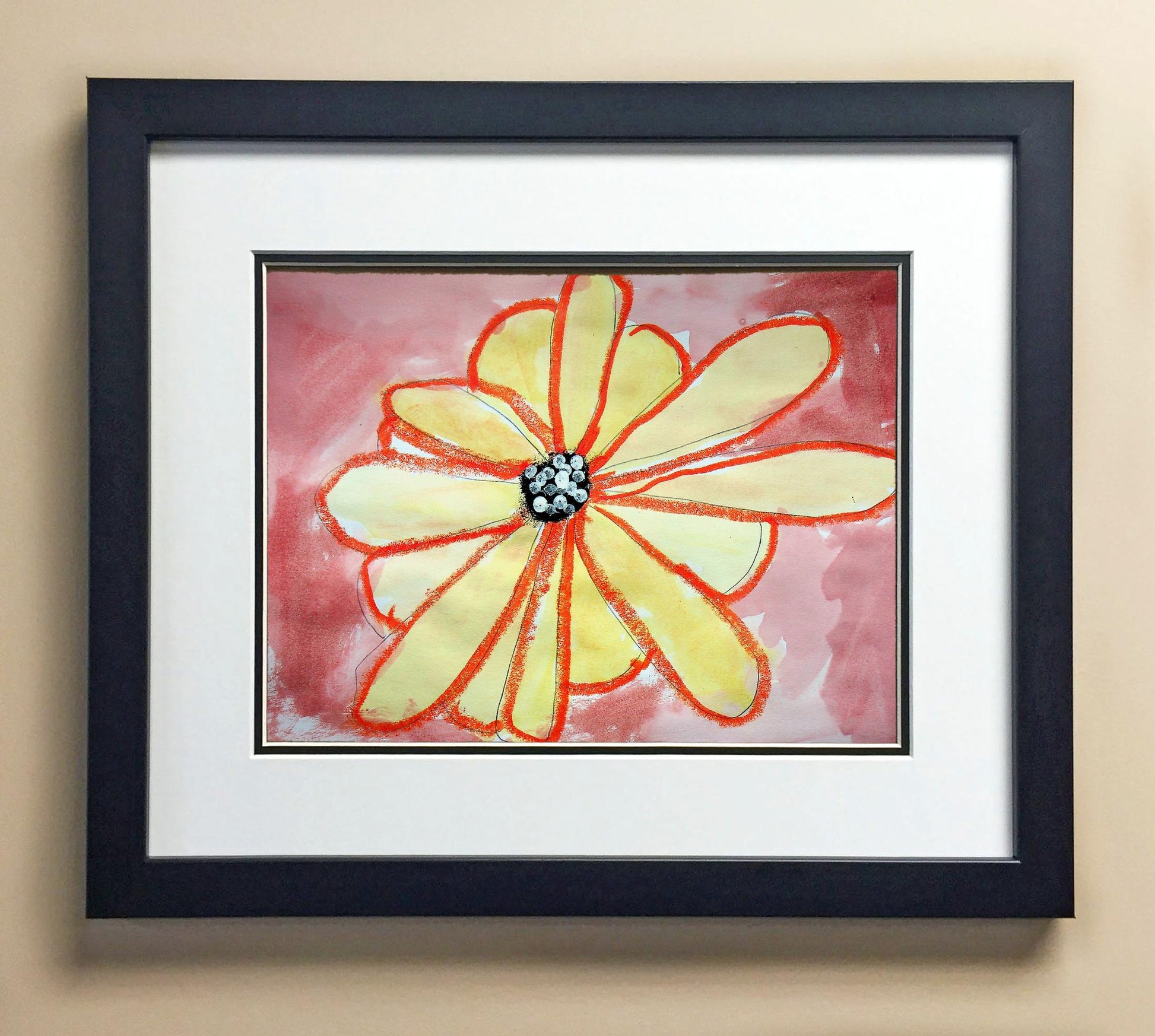 Included with the purchase is the Students Artwork, Frame, double matboard, shatter proof plexiglass, and a ready to hang backerboard with turnbuttons