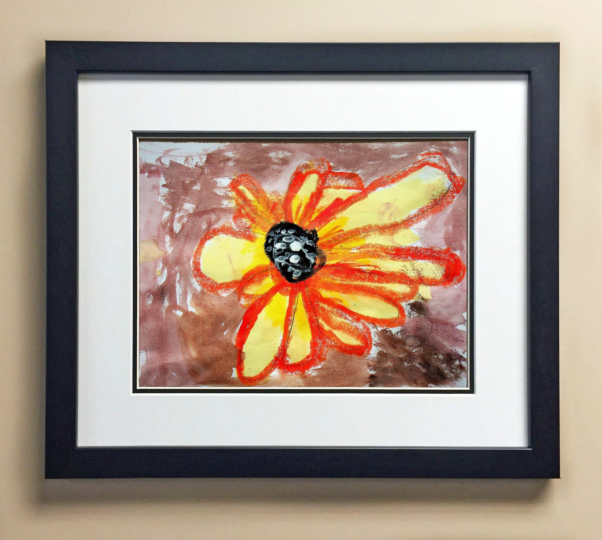 Included with the purchase is the Students Artwork, Frame, double matboard, shatter proof plexiglass, and a ready to hang backerboard with turnbuttons