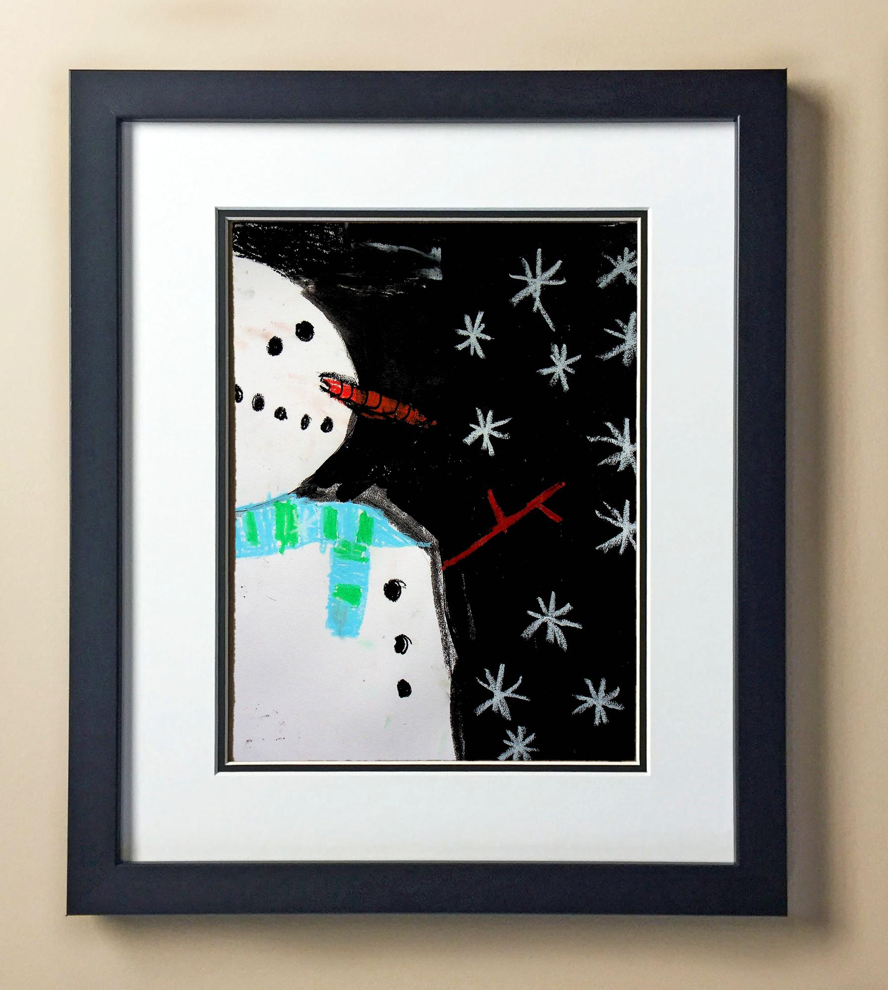 Included with the purchase is the Students Artwork, Frame, double matboard, shatter proof plexiglass, and a ready to hang backerboard with turnbuttons