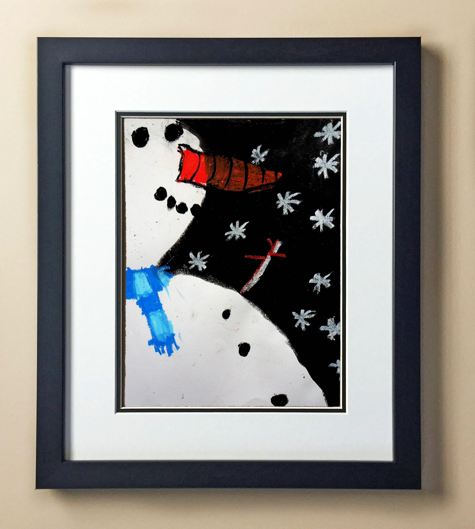 Included with the purchase is the Students Artwork, Frame, double matboard, shatter proof plexiglass, and a ready to hang backerboard with turnbuttons