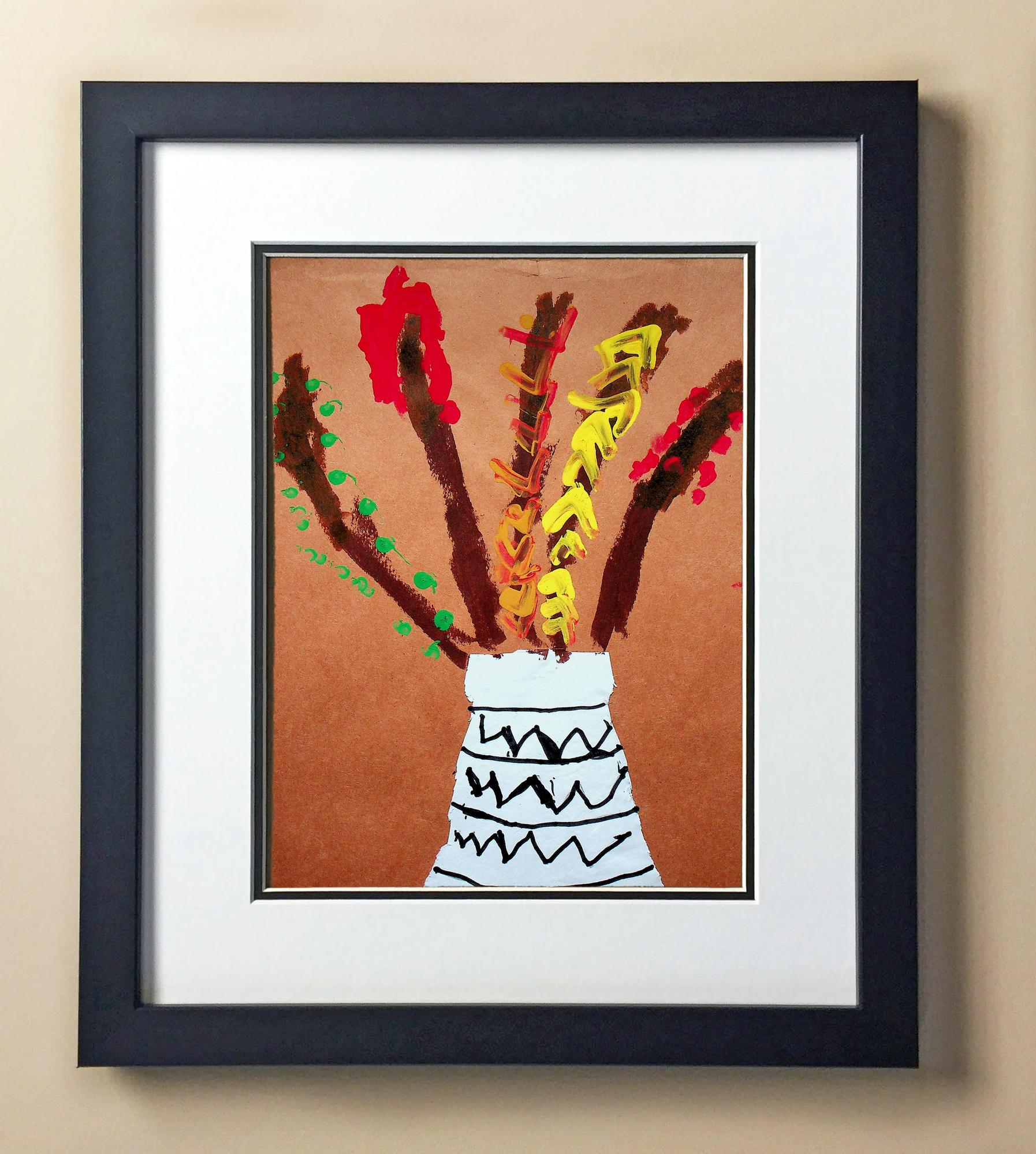 Included with the purchase is the Students Artwork, Frame, double matboard, shatter proof plexiglass, and a ready to hang backerboard with turnbuttons