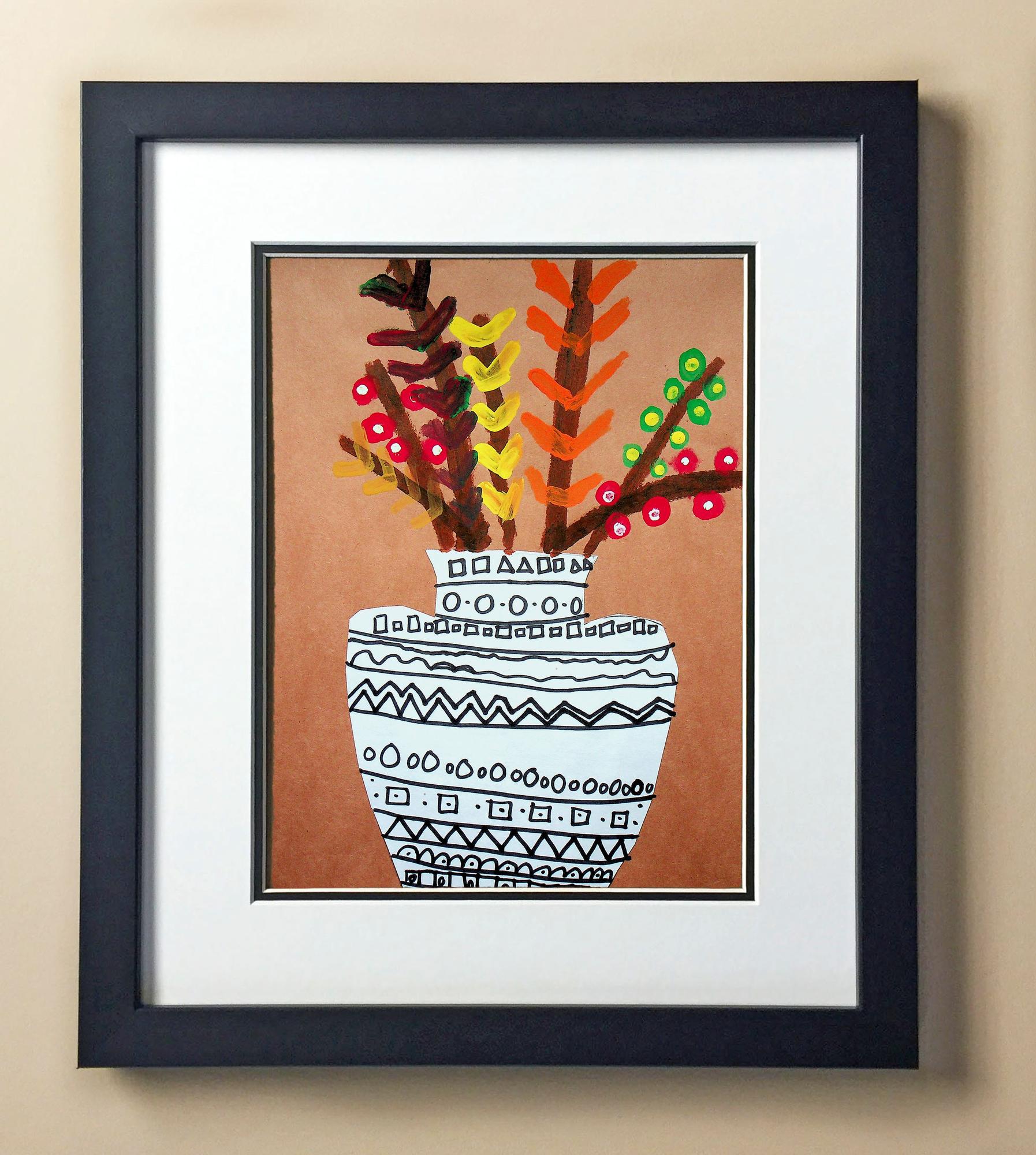 Included with the purchase is the Students Artwork, Frame, double matboard, shatter proof plexiglass, and a ready to hang backerboard with turnbuttons
