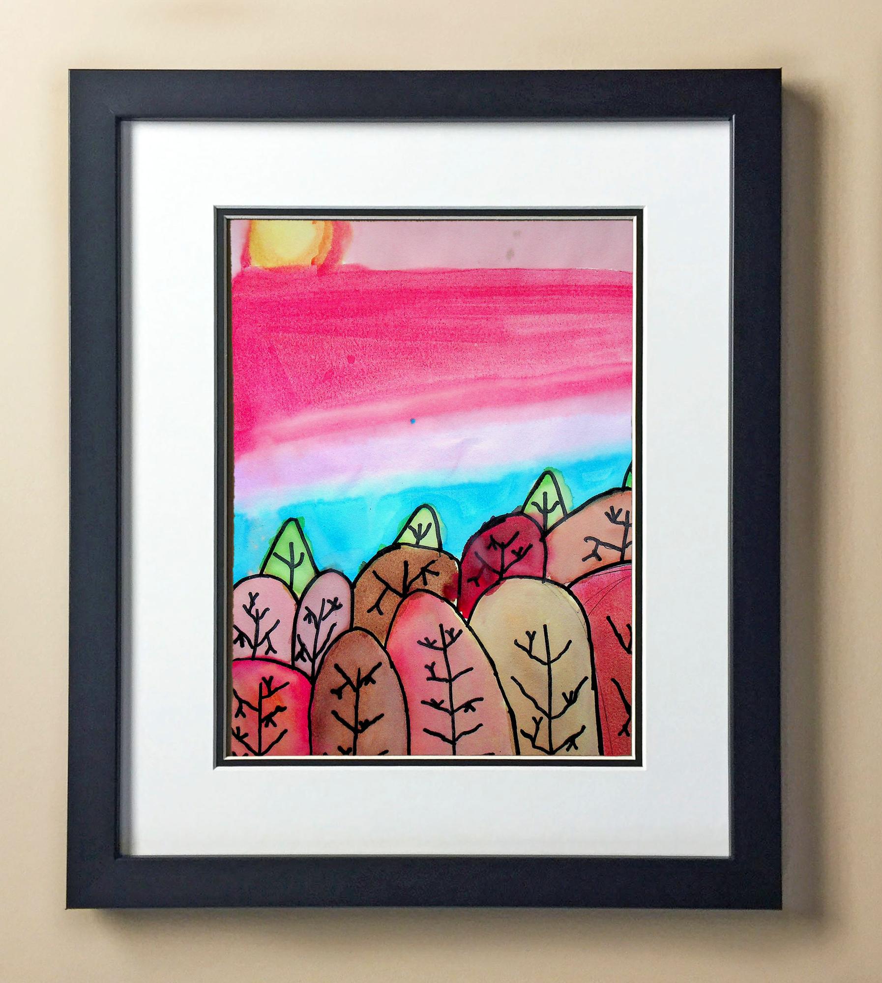 Included with the purchase is the Students Artwork, Frame, double matboard, shatter proof plexiglass, and a ready to hang backerboard with turnbuttons