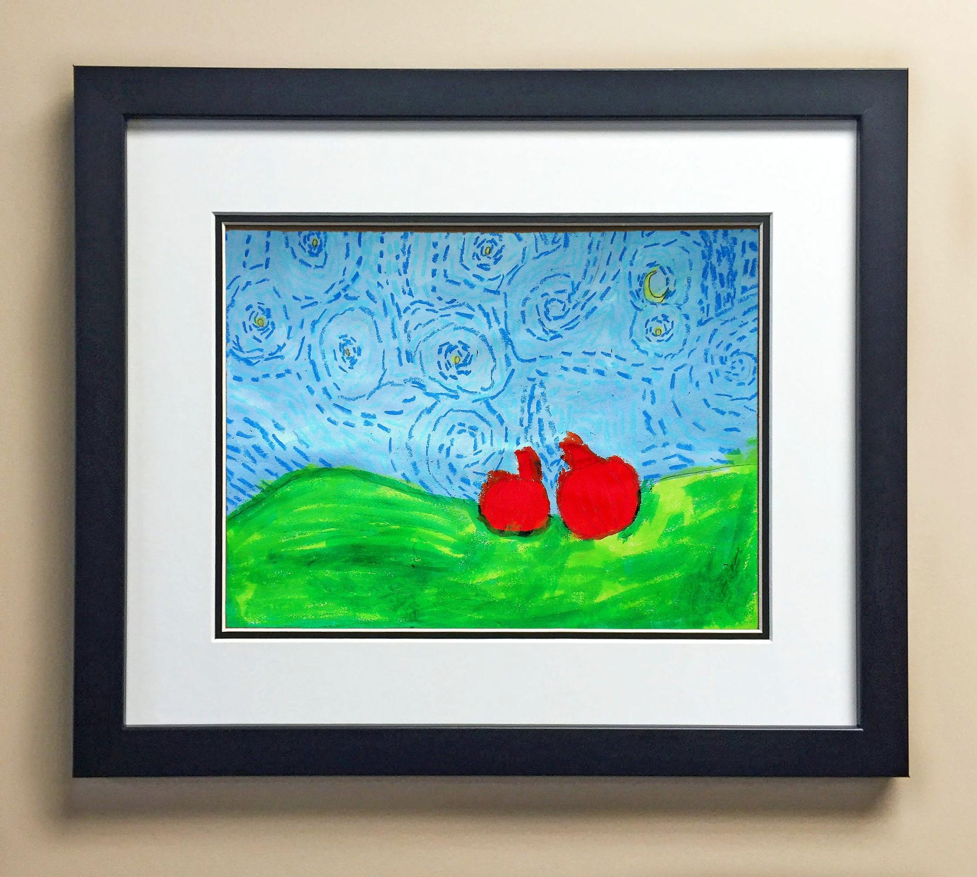 Included with the purchase is the Students Artwork, Frame, double matboard, shatter proof plexiglass, and a ready to hang backerboard with turnbuttons