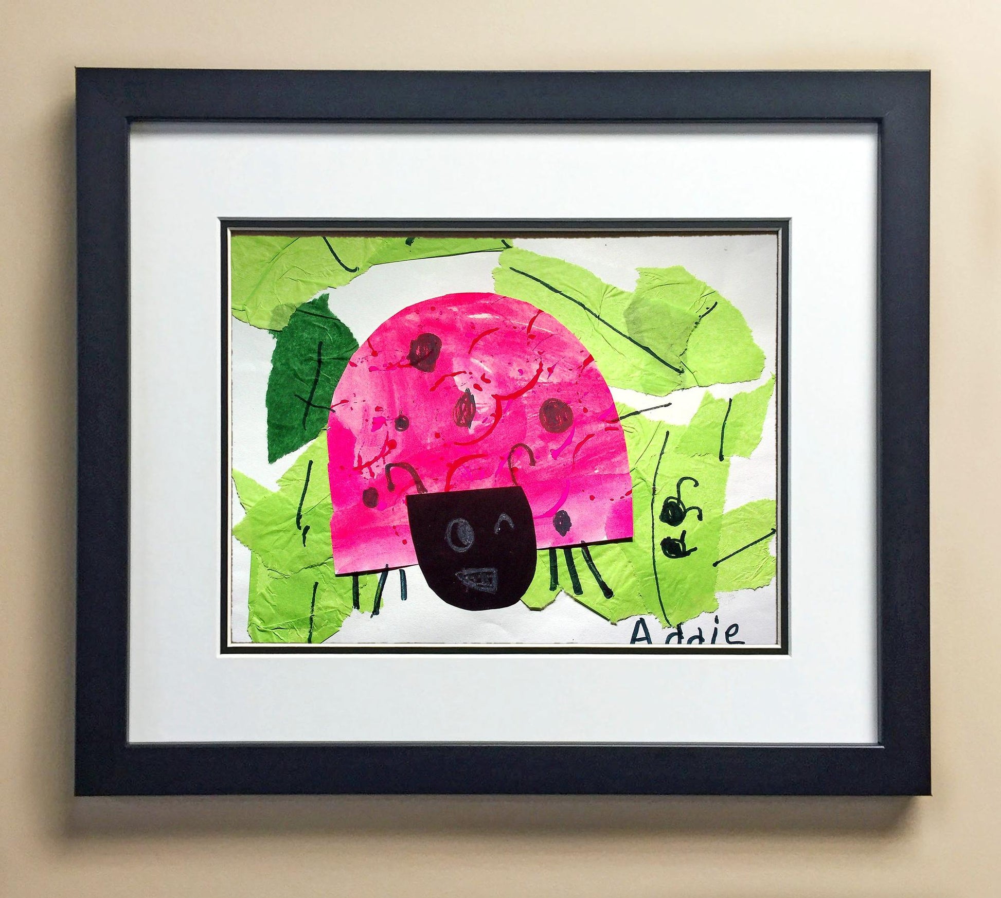 Included with the purchase is the Students Artwork, Frame, double matboard, shatter proof plexiglass, and a ready to hang backerboard with turnbuttons