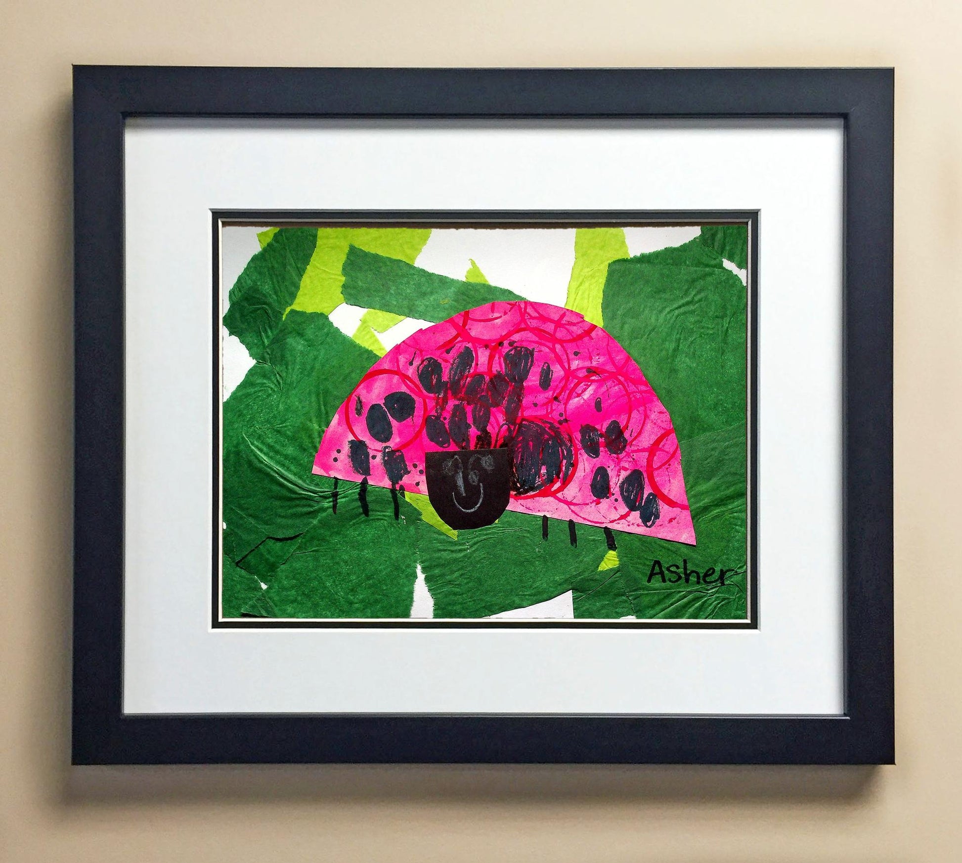 Included with the purchase is the Students Artwork, Frame, double matboard, shatter proof plexiglass, and a ready to hang backerboard with turnbuttons