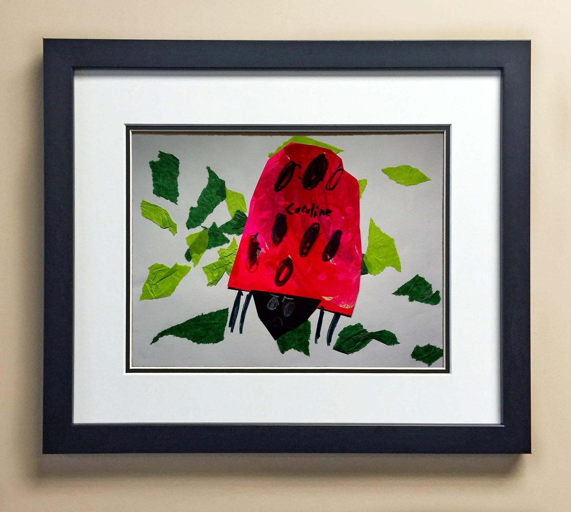 Included with the purchase is the Students Artwork, Frame, double matboard, shatter proof plexiglass, and a ready to hang backerboard with turnbuttons