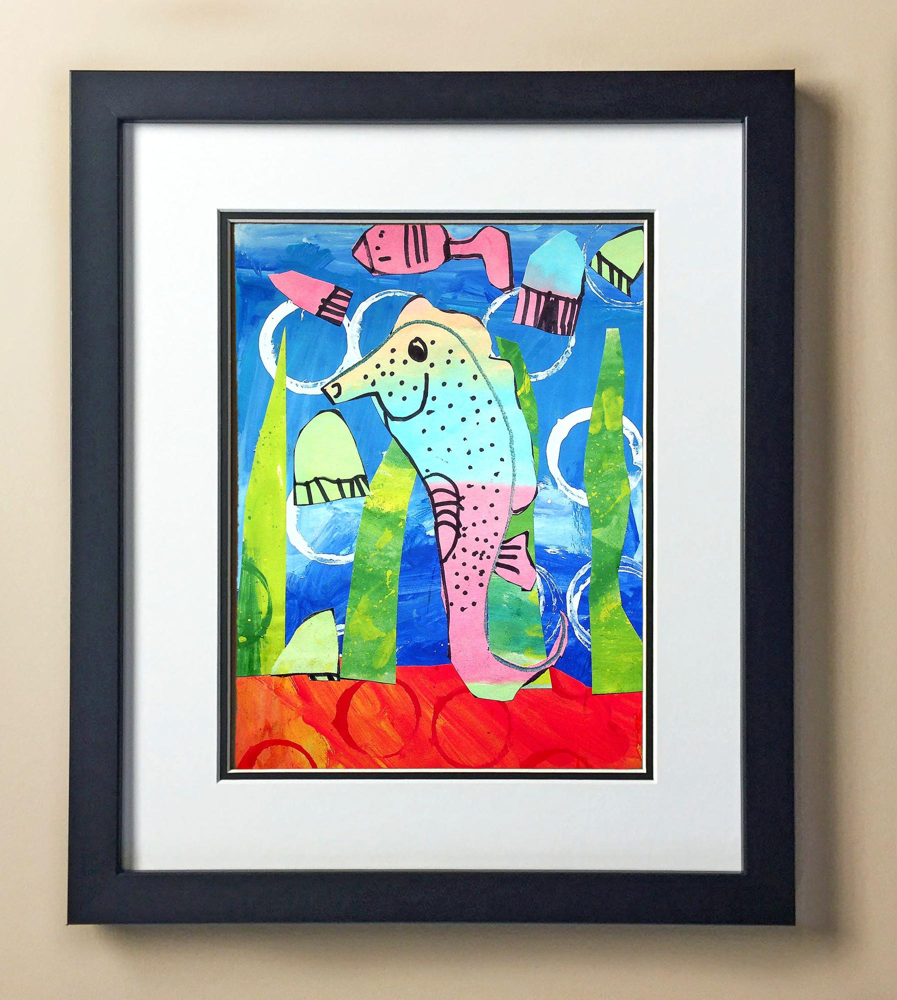 Included with the purchase is the Students Artwork, Frame, double matboard, shatter proof plexiglass, and a ready to hang backerboard with turnbuttons