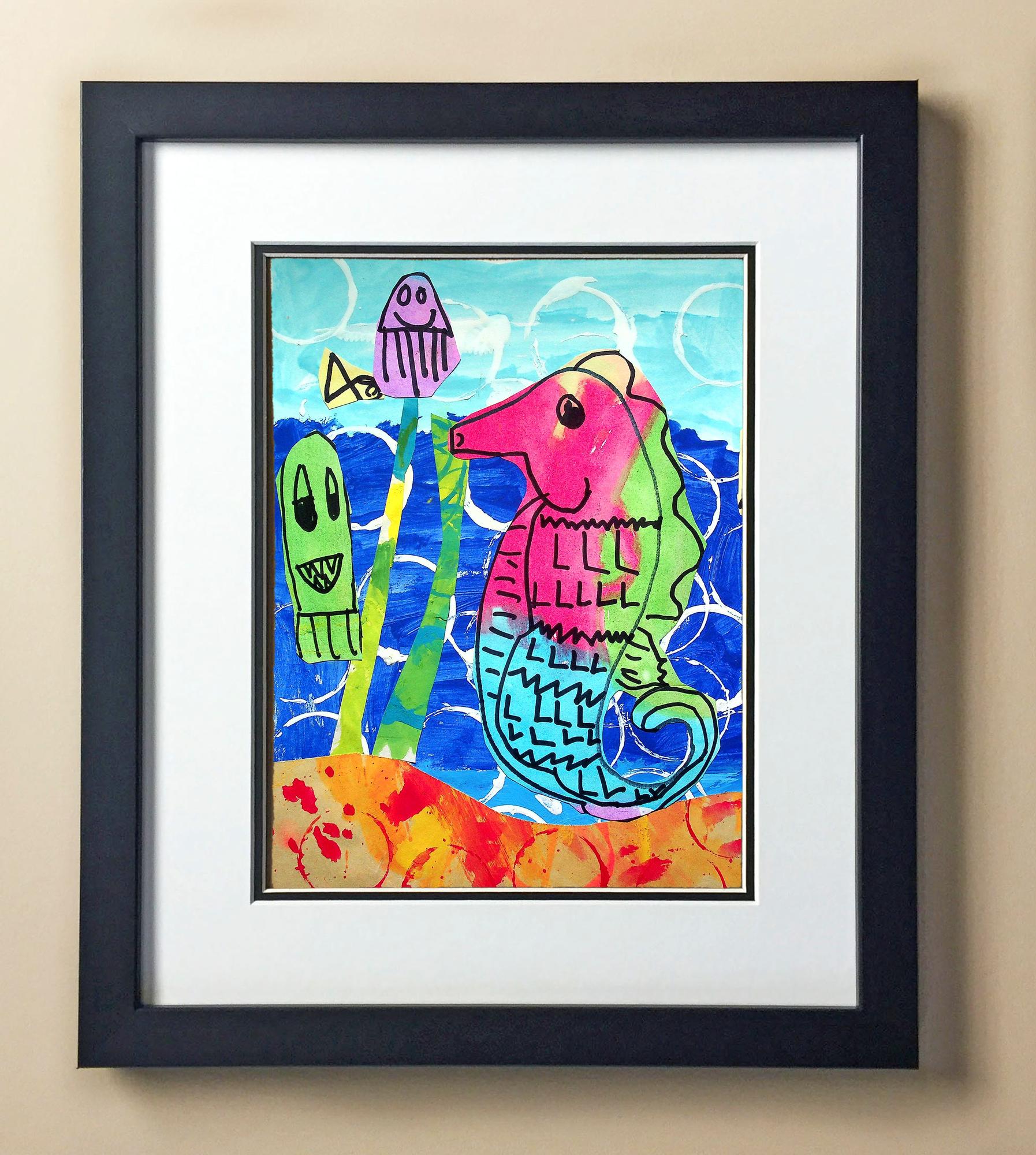 Included with the purchase is the Students Artwork, Frame, double matboard, shatter proof plexiglass, and a ready to hang backerboard with turnbuttons