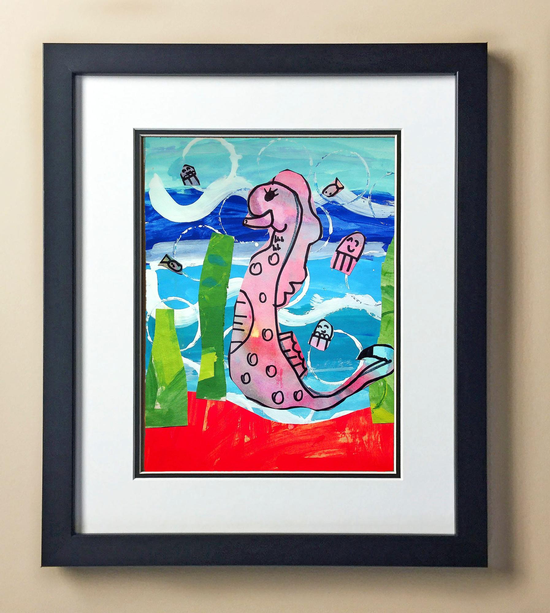 Included with the purchase is the Students Artwork, Frame, double matboard, shatter proof plexiglass, and a ready to hang backerboard with turnbuttons