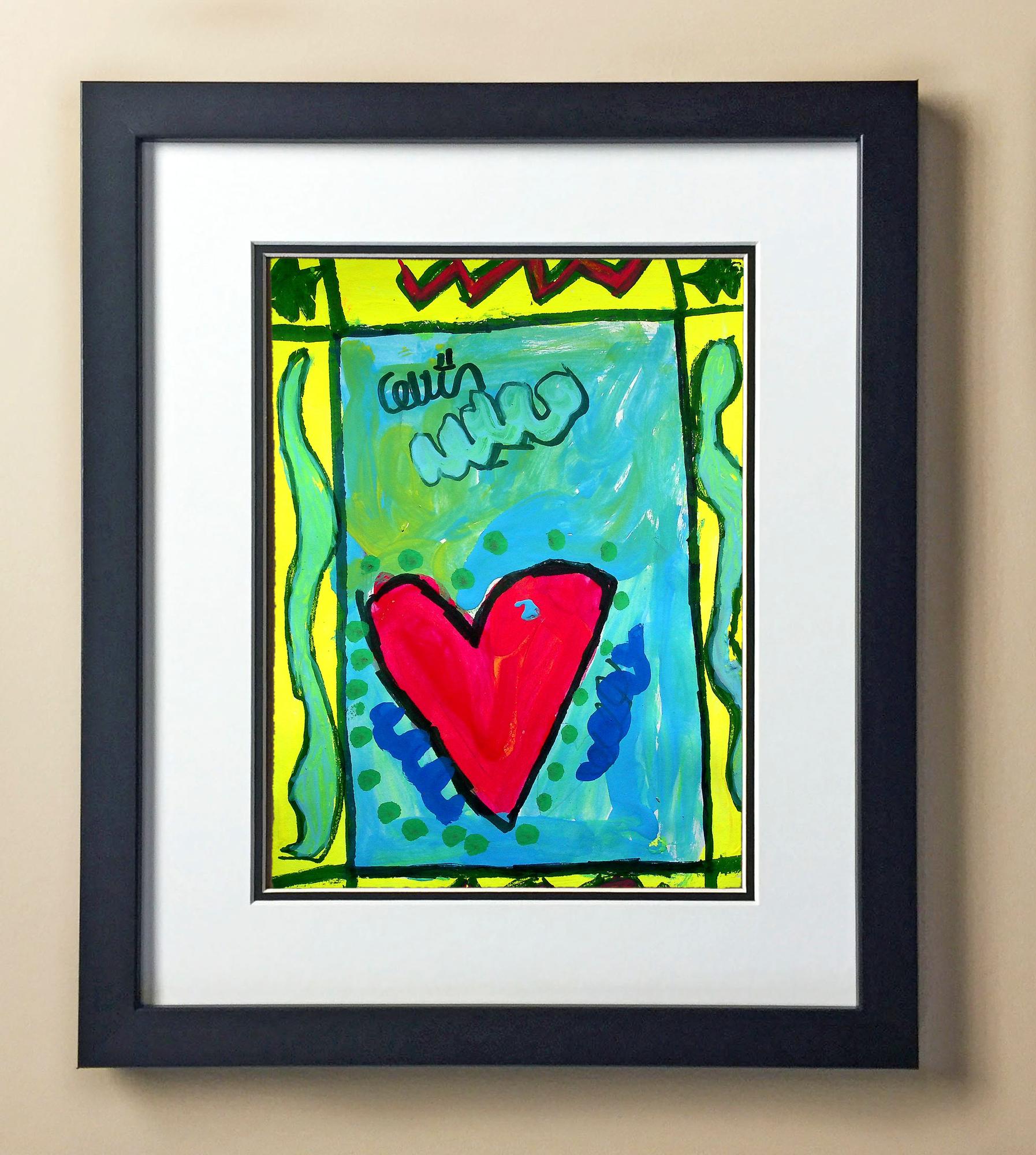 Included with the purchase is the Students Artwork, Frame, double matboard, shatter proof plexiglass, and a ready to hang backerboard with turnbuttons