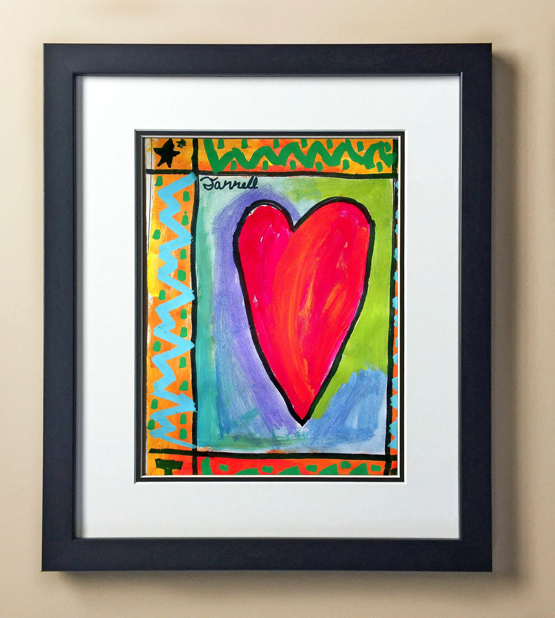 Included with the purchase is the Students Artwork, Frame, double matboard, shatter proof plexiglass, and a ready to hang backerboard with turnbuttons