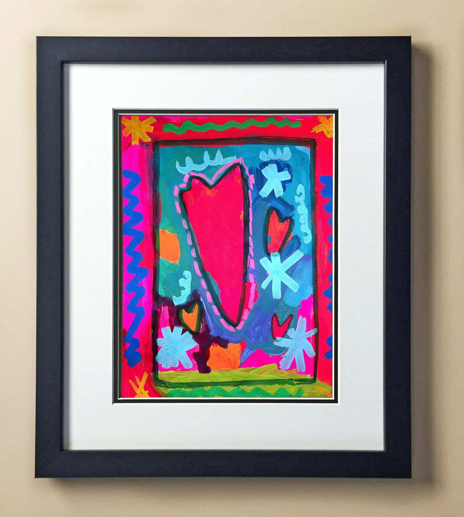 Included with the purchase is the Students Artwork, Frame, double matboard, shatter proof plexiglass, and a ready to hang backerboard with turnbuttons
