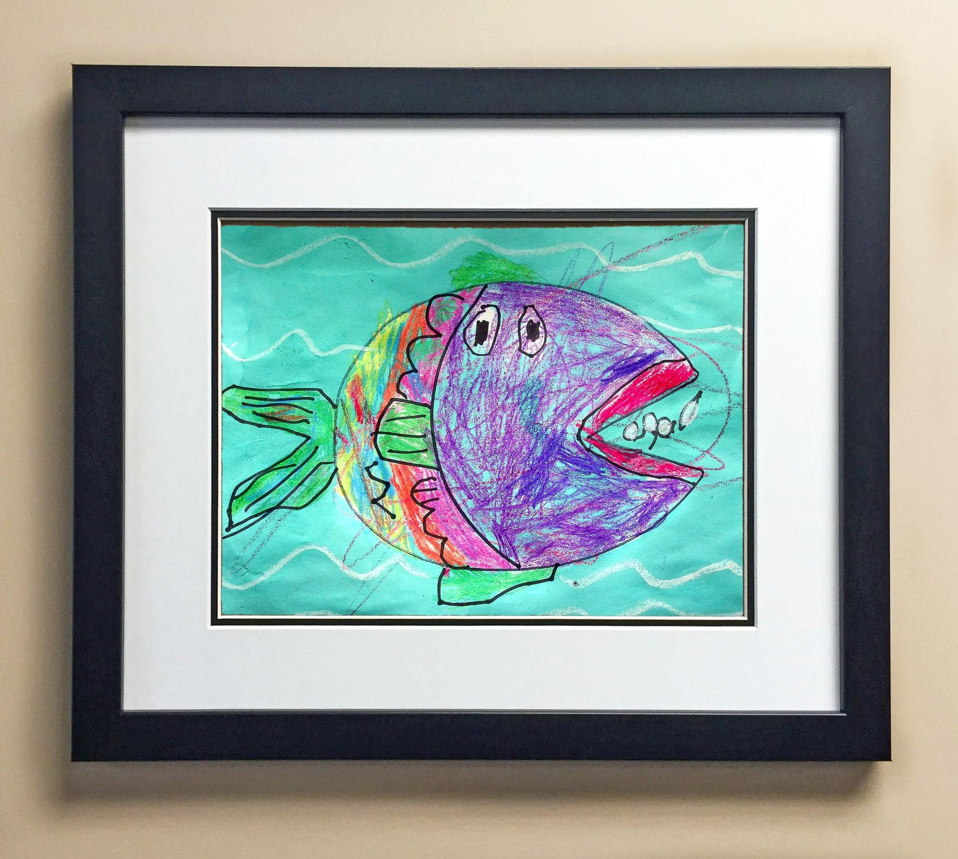 Included with the purchase is the Students Artwork, Frame, double matboard, shatter proof plexiglass, and a ready to hang backerboard with turnbuttons