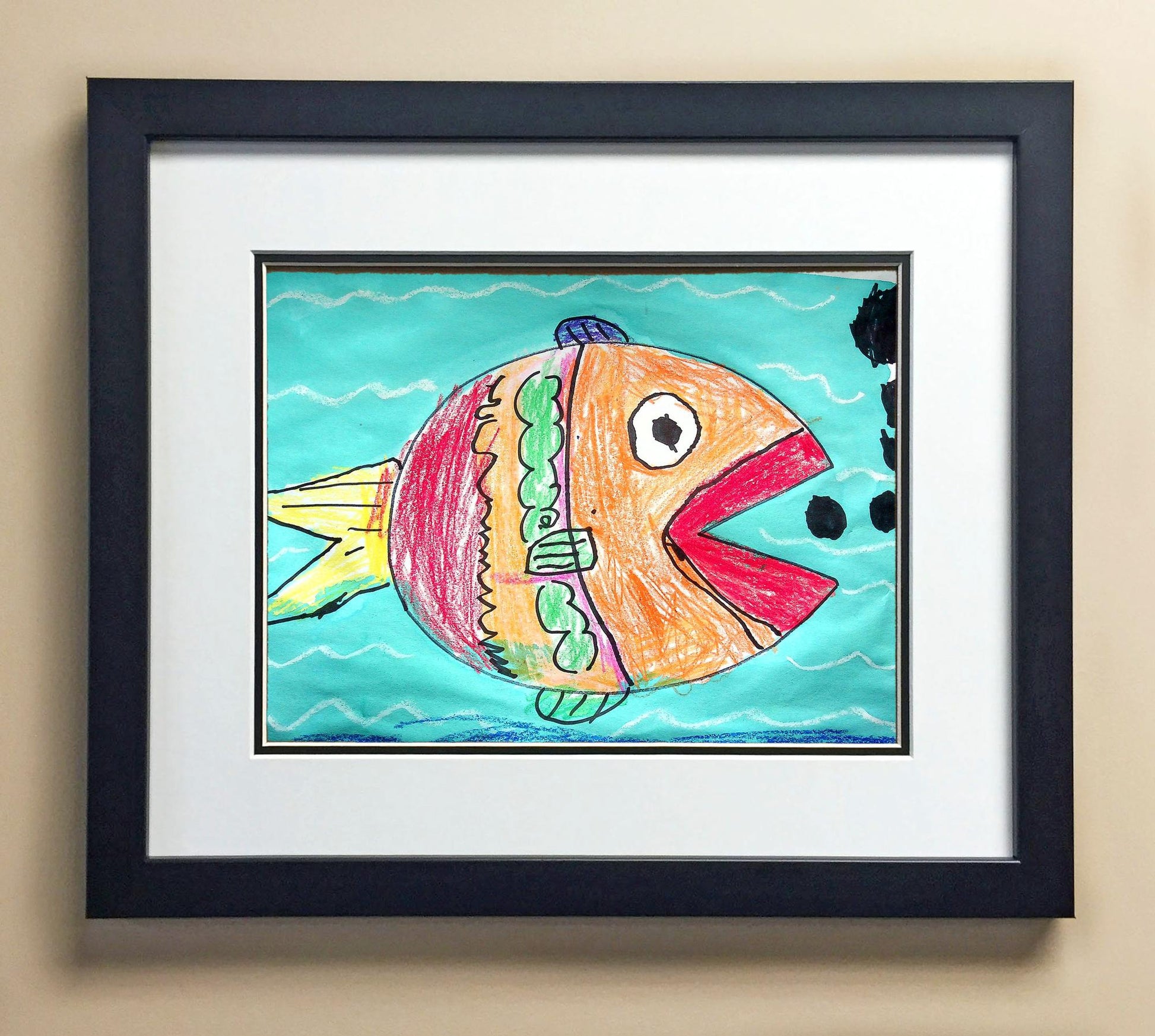 Included with the purchase is the Students Artwork, Frame, double matboard, shatter proof plexiglass, and a ready to hang backerboard with turnbuttons