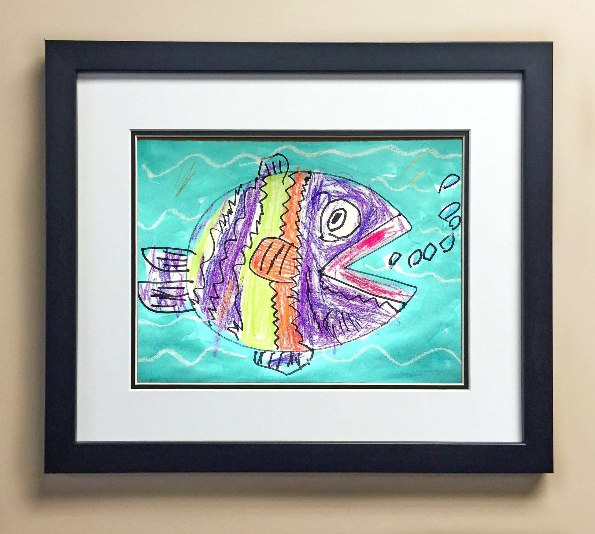 Included with the purchase is the Students Artwork, Frame, double matboard, shatter proof plexiglass, and a ready to hang backerboard with turnbuttons