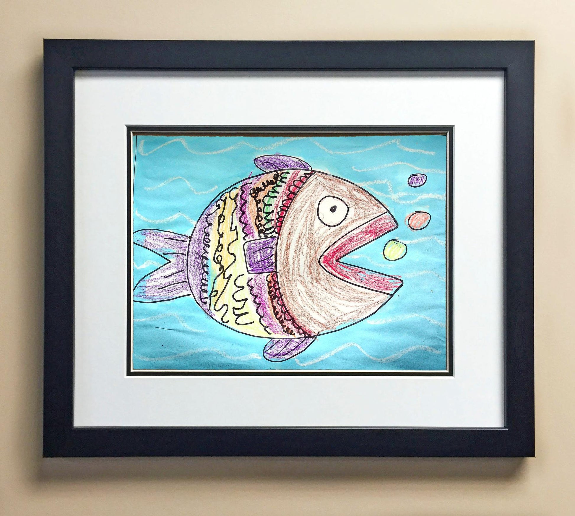 Included with the purchase is the Students Artwork, Frame, double matboard, shatter proof plexiglass, and a ready to hang backerboard with turnbuttons