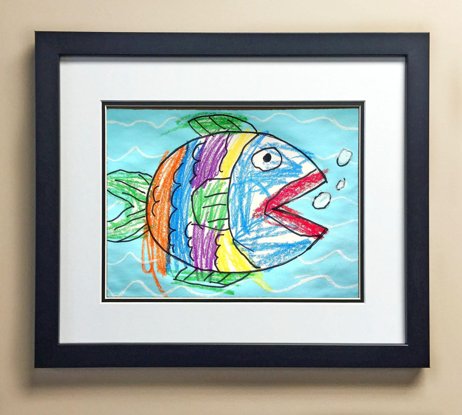 Included with the purchase is the Students Artwork, Frame, double matboard, shatter proof plexiglass, and a ready to hang backerboard with turnbuttons