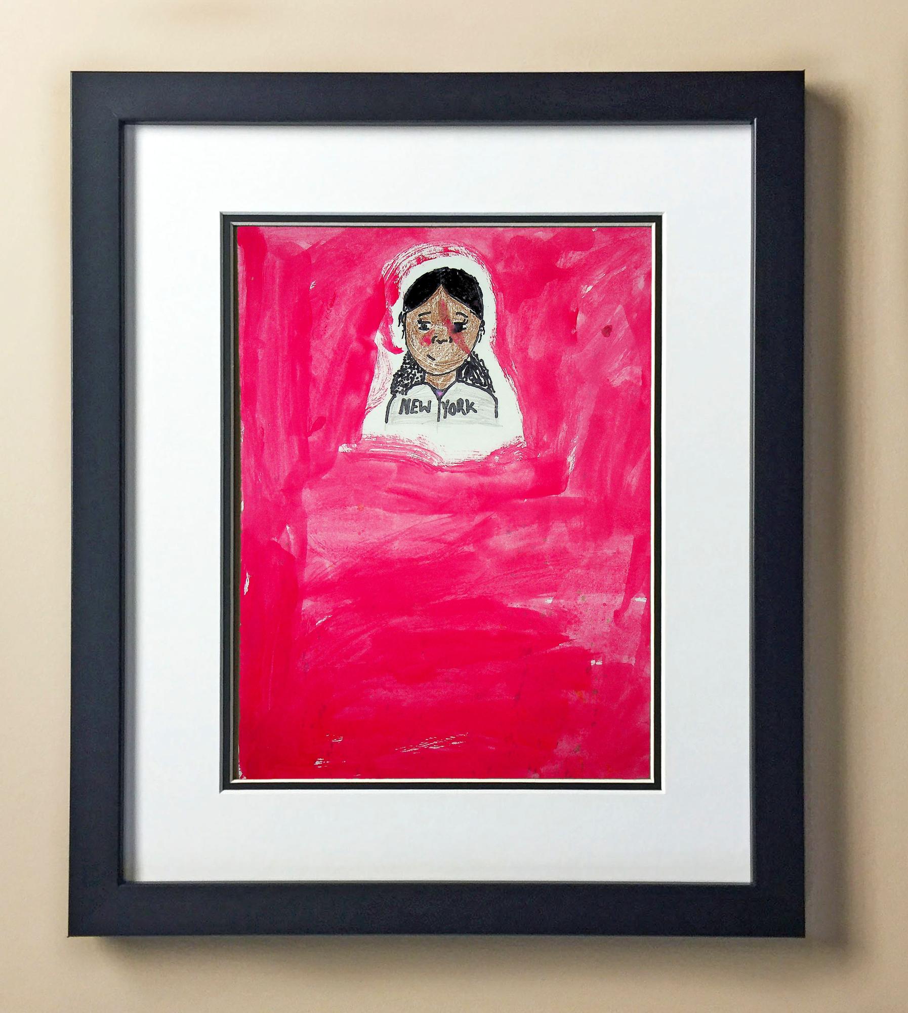 Included with the purchase is the Students Artwork, Frame, double matboard, shatter proof plexiglass, and a ready to hang backerboard with turnbuttons