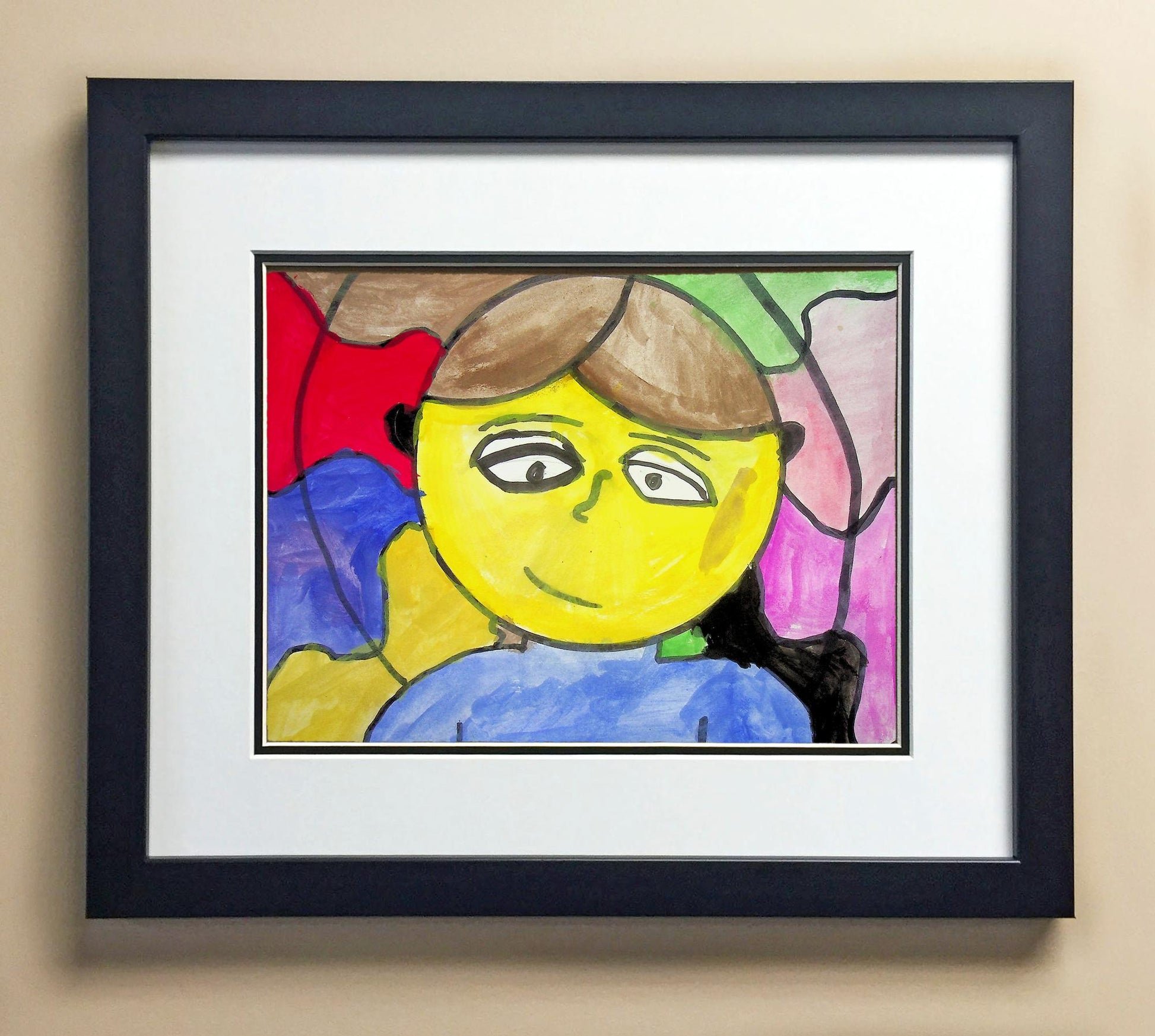 Included with the purchase is the Students Artwork, Frame, double matboard, shatter proof plexiglass, and a ready to hang backerboard with turnbuttons