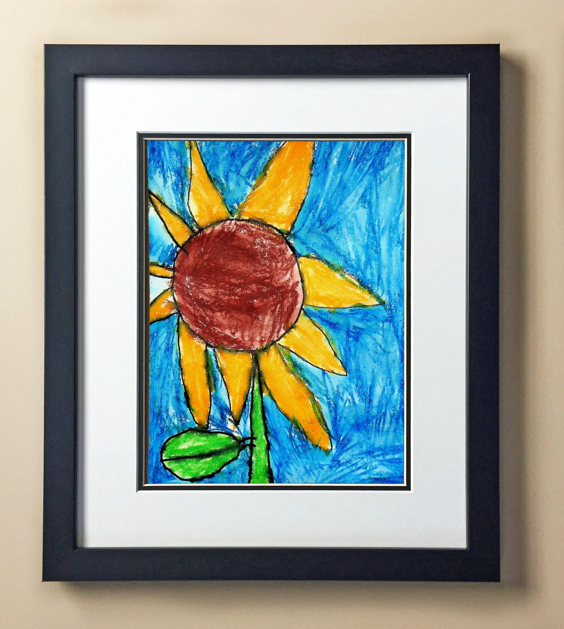 Included with the purchase is the Students Artwork, Frame, double matboard, shatter proof plexiglass, and a ready to hang backerboard with turnbuttons