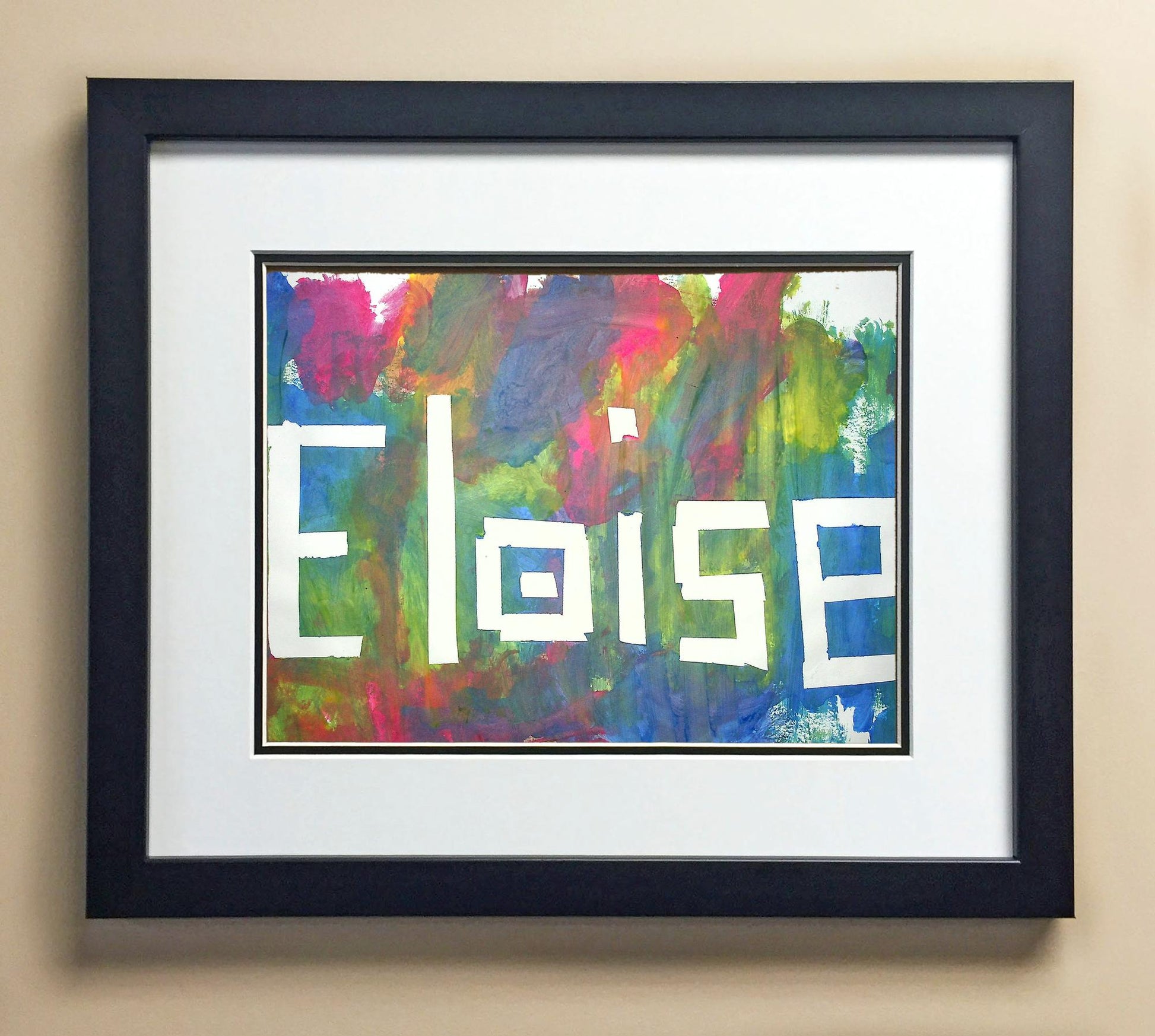 Included with the purchase is the Students Artwork, Frame, double matboard, shatter proof plexiglass, and a ready to hang backerboard with turnbuttons