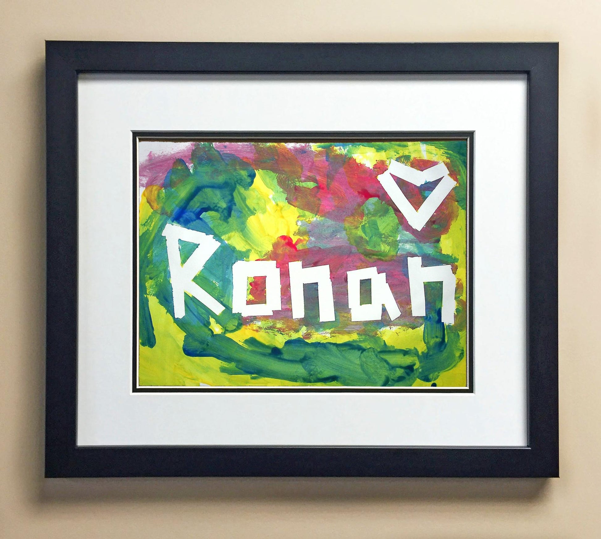 Included with the purchase is the Students Artwork, Frame, double matboard, shatter proof plexiglass, and a ready to hang backerboard with turnbuttons