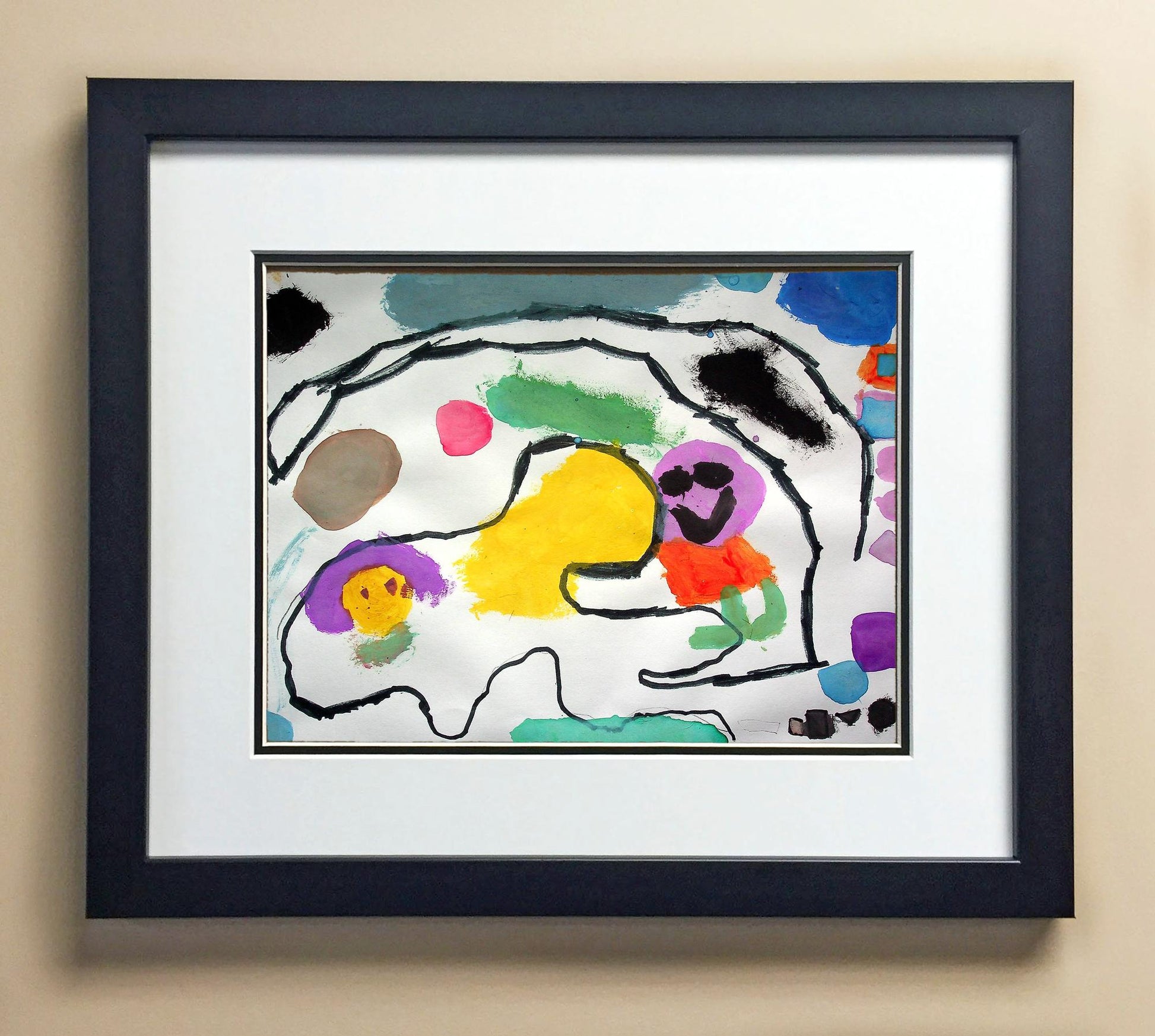 Included with the purchase is the Students Artwork, Frame, double matboard, shatter proof plexiglass, and a ready to hang backerboard with turnbuttons