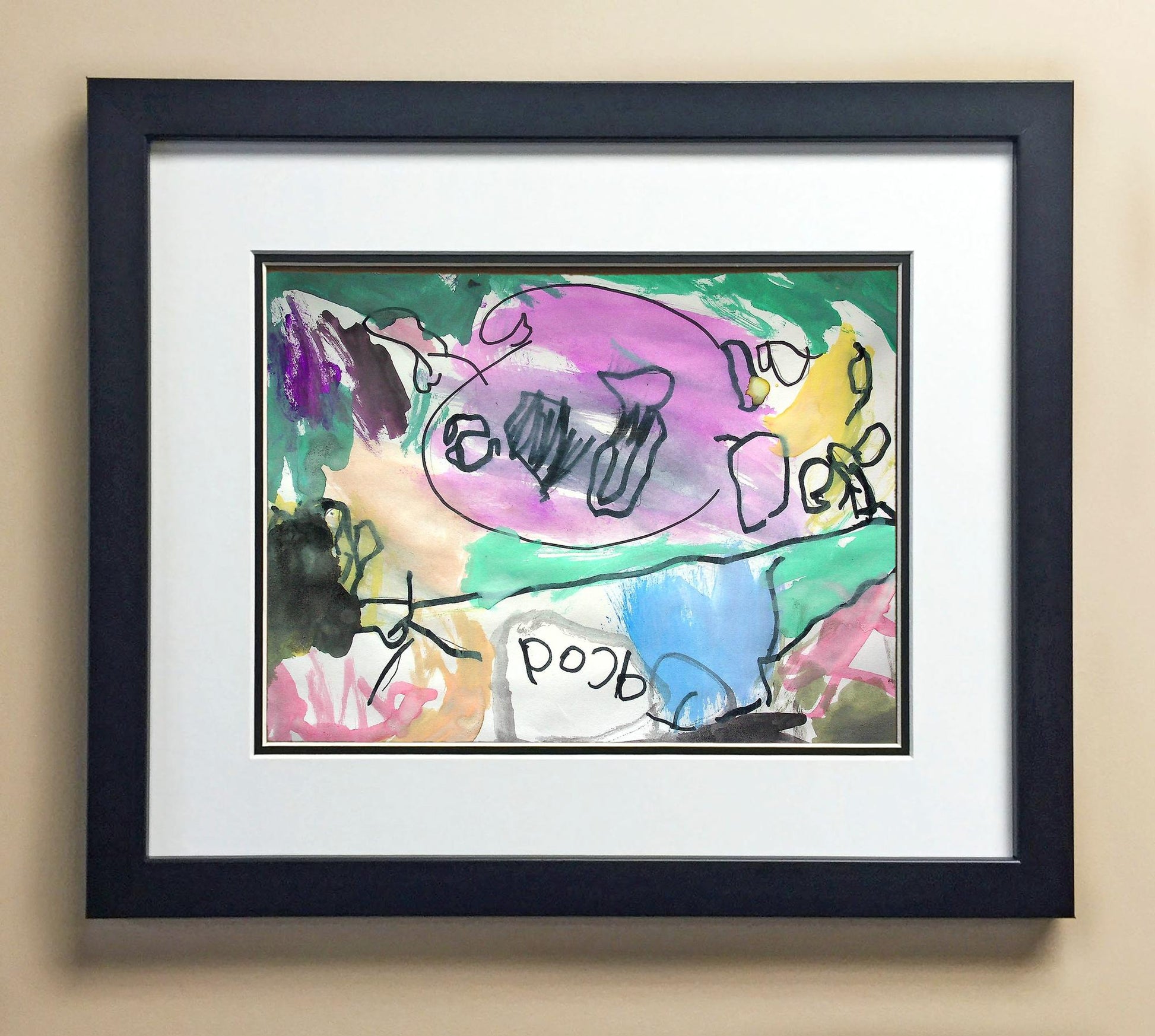 Included with the purchase is the Students Artwork, Frame, double matboard, shatter proof plexiglass, and a ready to hang backerboard with turnbuttons