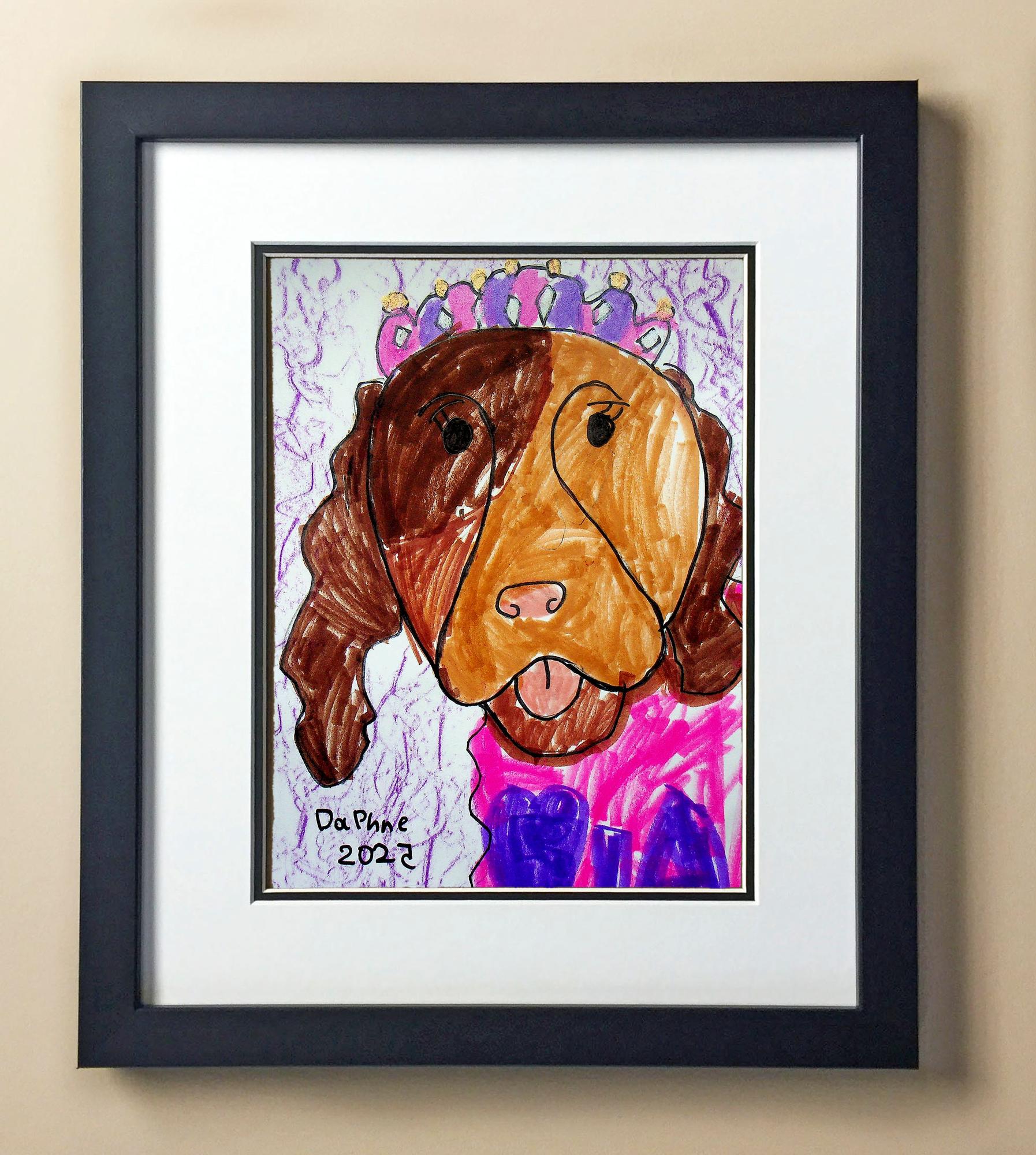 Included with the purchase is the Students Artwork, Frame, double matboard, shatter proof plexiglass, and a ready to hang backerboard with turnbuttons