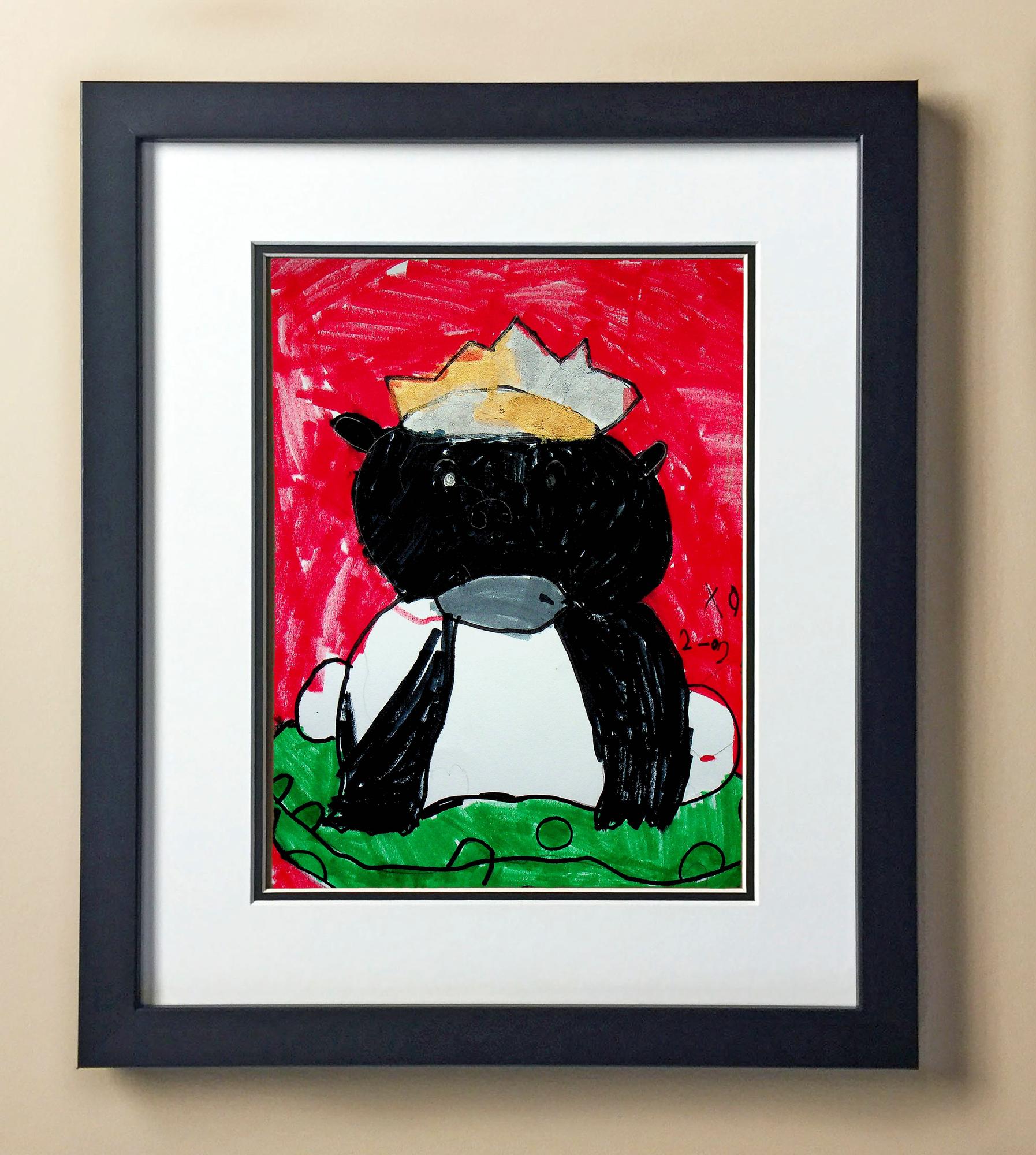Included with the purchase is the Students Artwork, Frame, double matboard, shatter proof plexiglass, and a ready to hang backerboard with turnbuttons