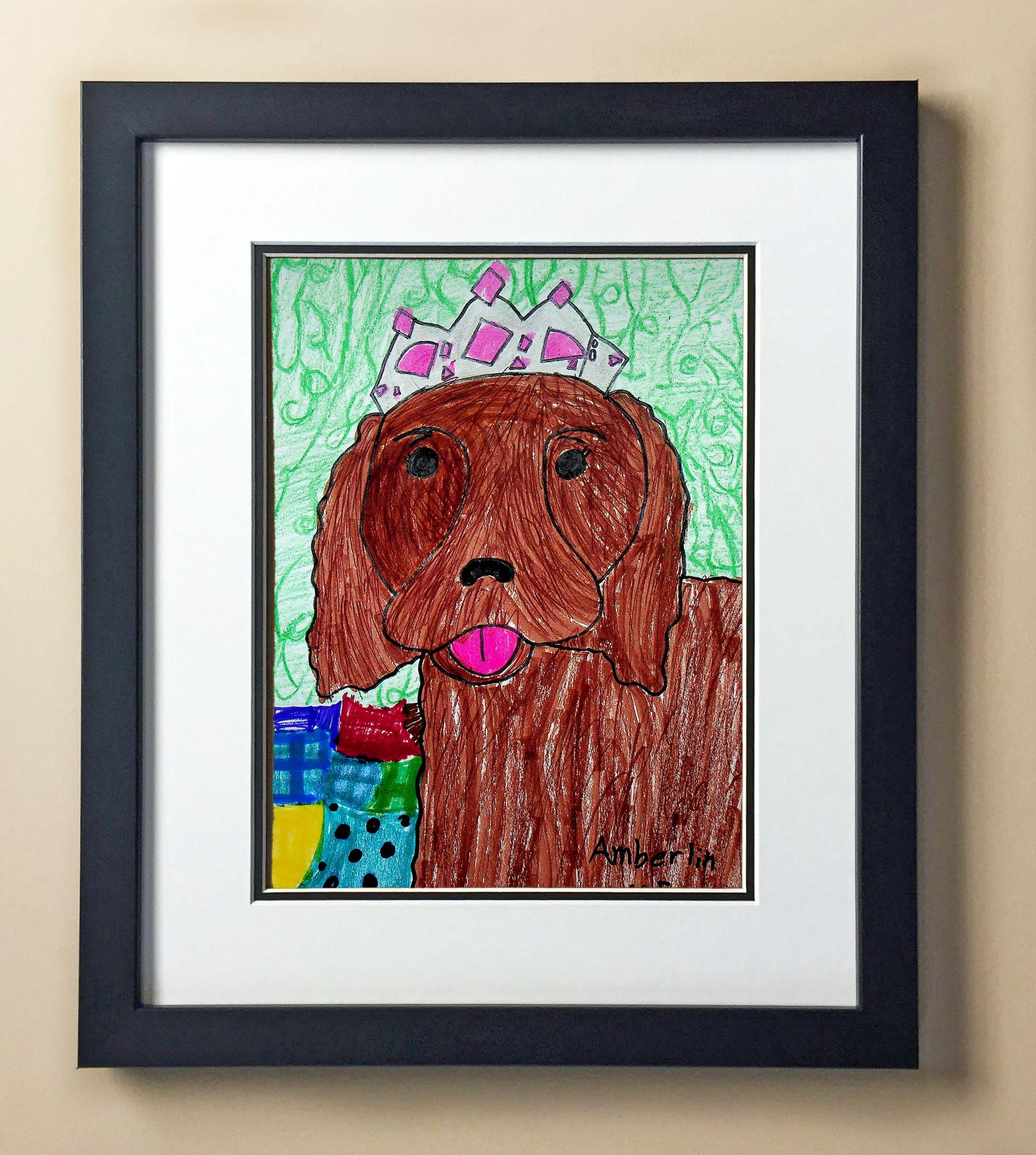 Included with the purchase is the Students Artwork, Frame, double matboard, shatter proof plexiglass, and a ready to hang backerboard with turnbuttons