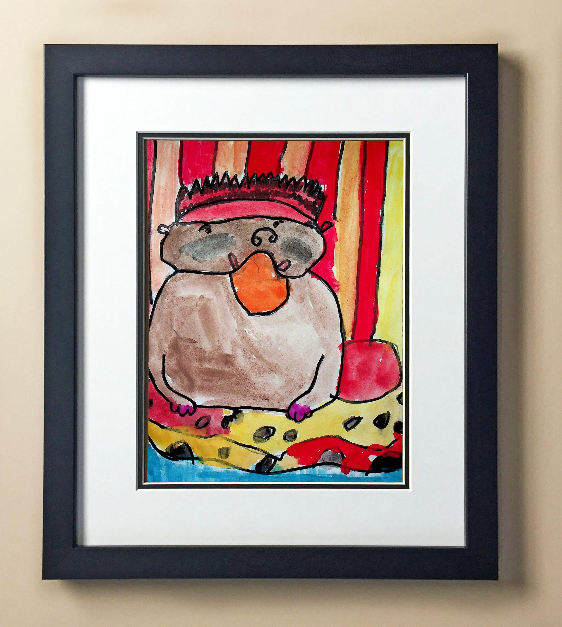 Included with the purchase is the Students Artwork, Frame, double matboard, shatter proof plexiglass, and a ready to hang backerboard with turnbuttons