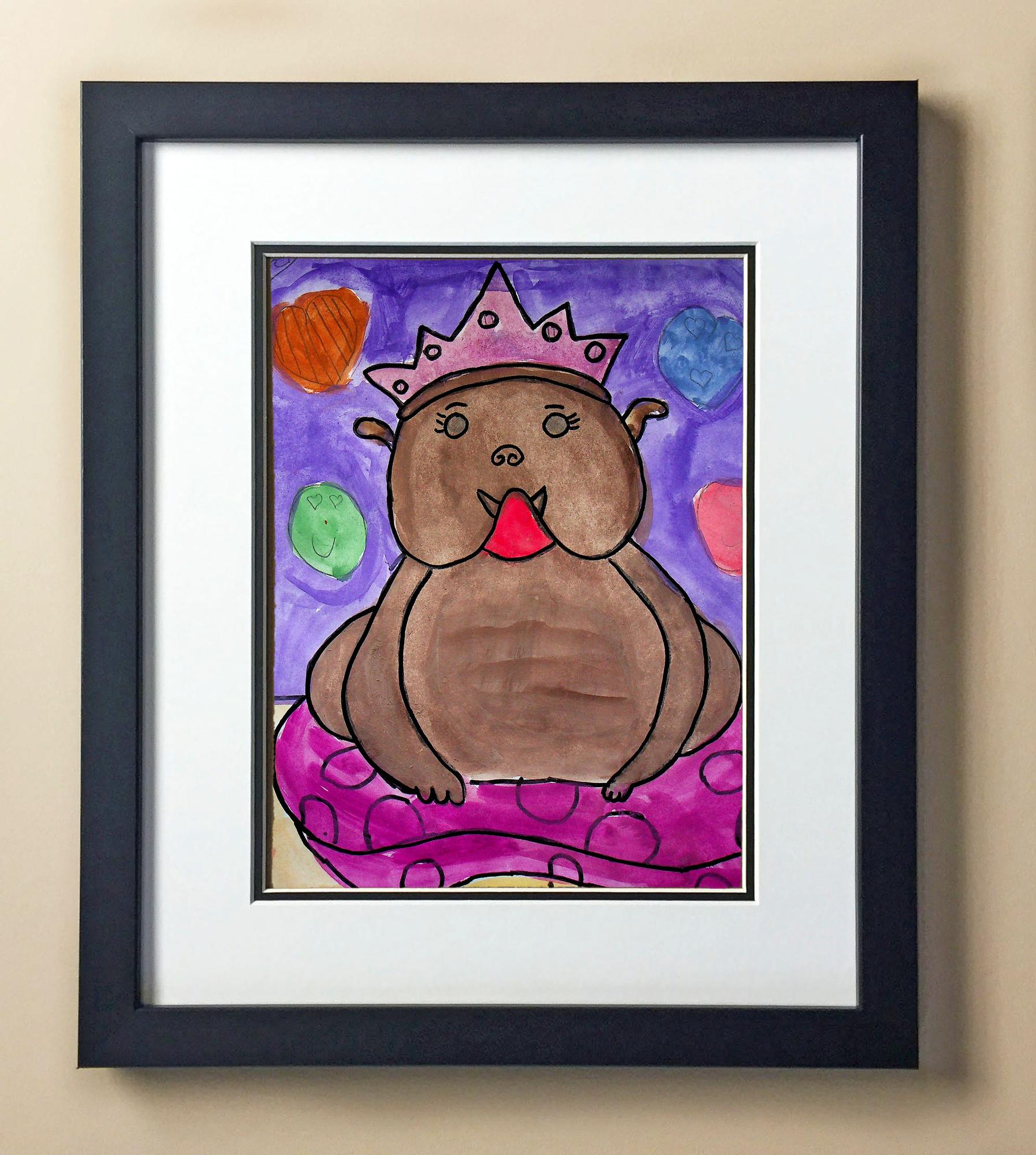 Included with the purchase is the Students Artwork, Frame, double matboard, shatter proof plexiglass, and a ready to hang backerboard with turnbuttons