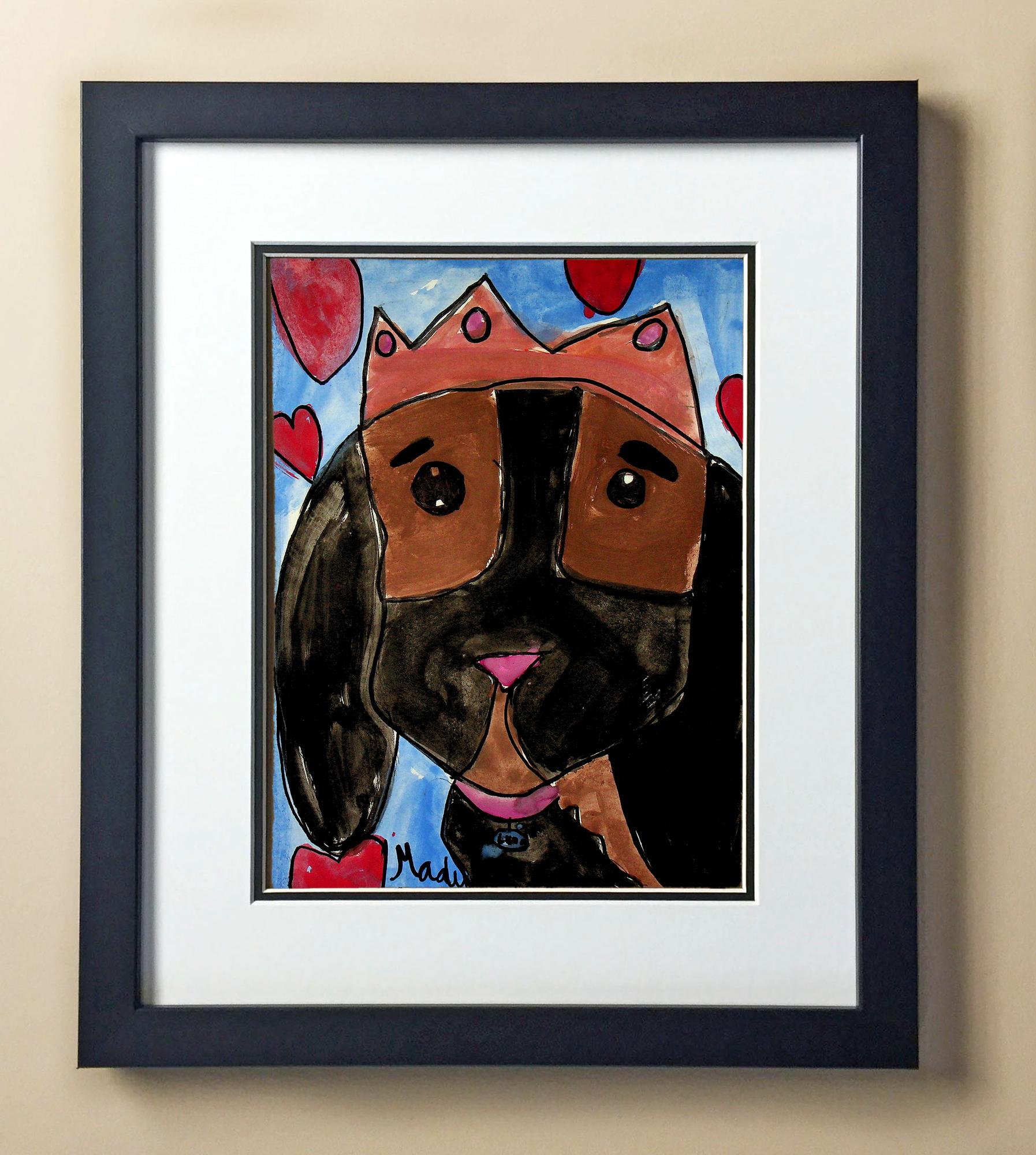 Included with the purchase is the Students Artwork, Frame, double matboard, shatter proof plexiglass, and a ready to hang backerboard with turnbuttons