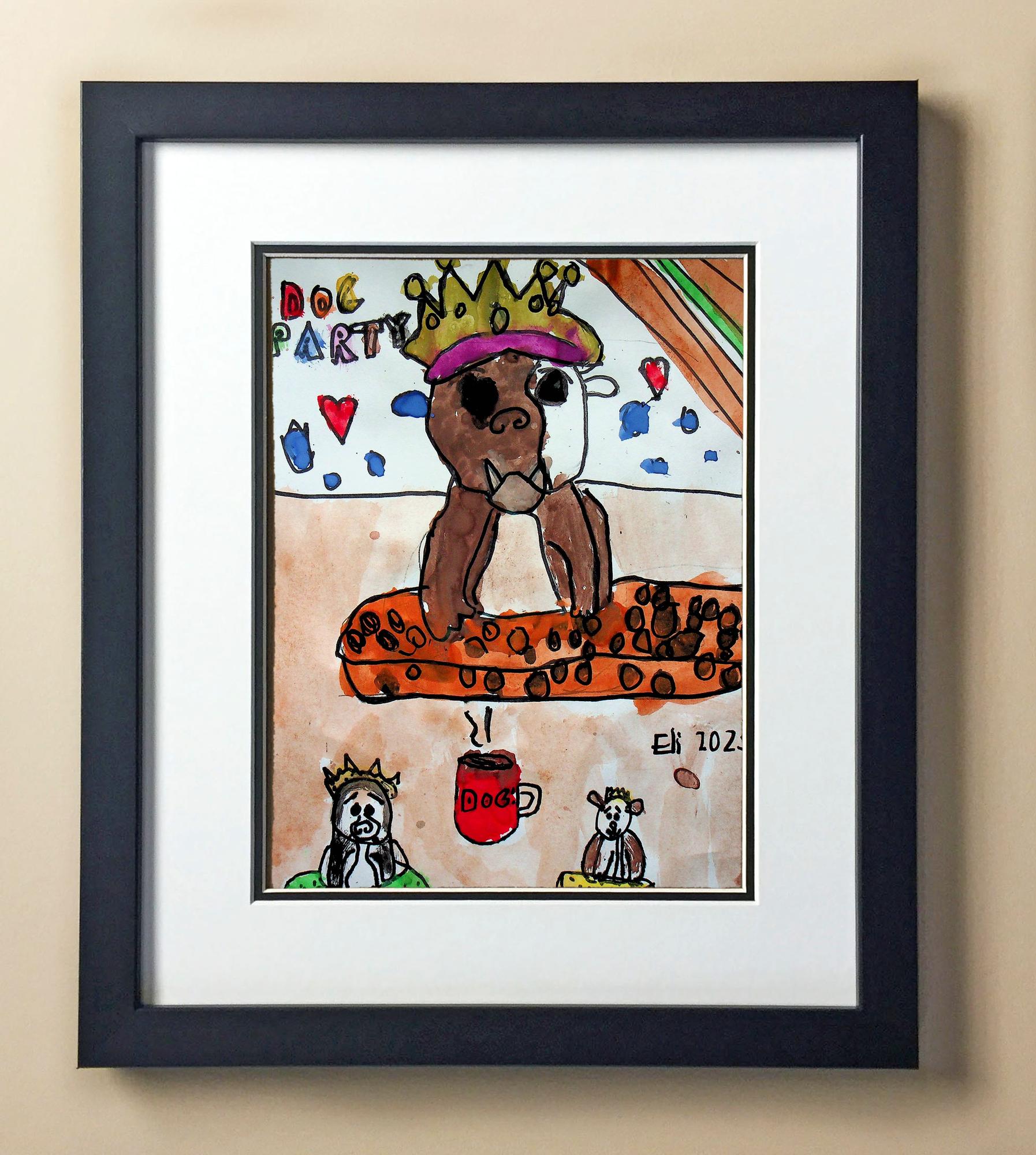 Included with the purchase is the Students Artwork, Frame, double matboard, shatter proof plexiglass, and a ready to hang backerboard with turnbuttons