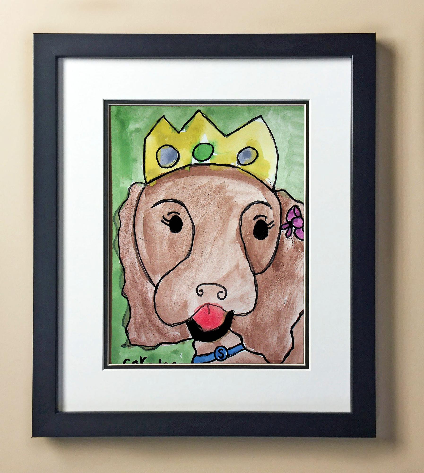 Included with the purchase is the Students Artwork, Frame, double matboard, shatter proof plexiglass, and a ready to hang backerboard with turnbuttons
