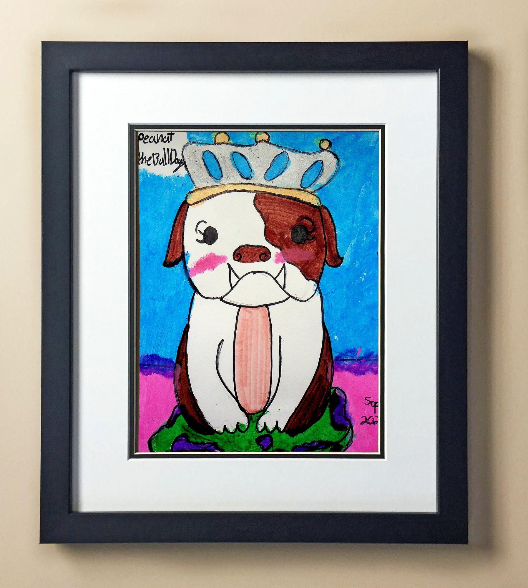 Included with the purchase is the Students Artwork, Frame, double matboard, shatter proof plexiglass, and a ready to hang backerboard with turnbuttons