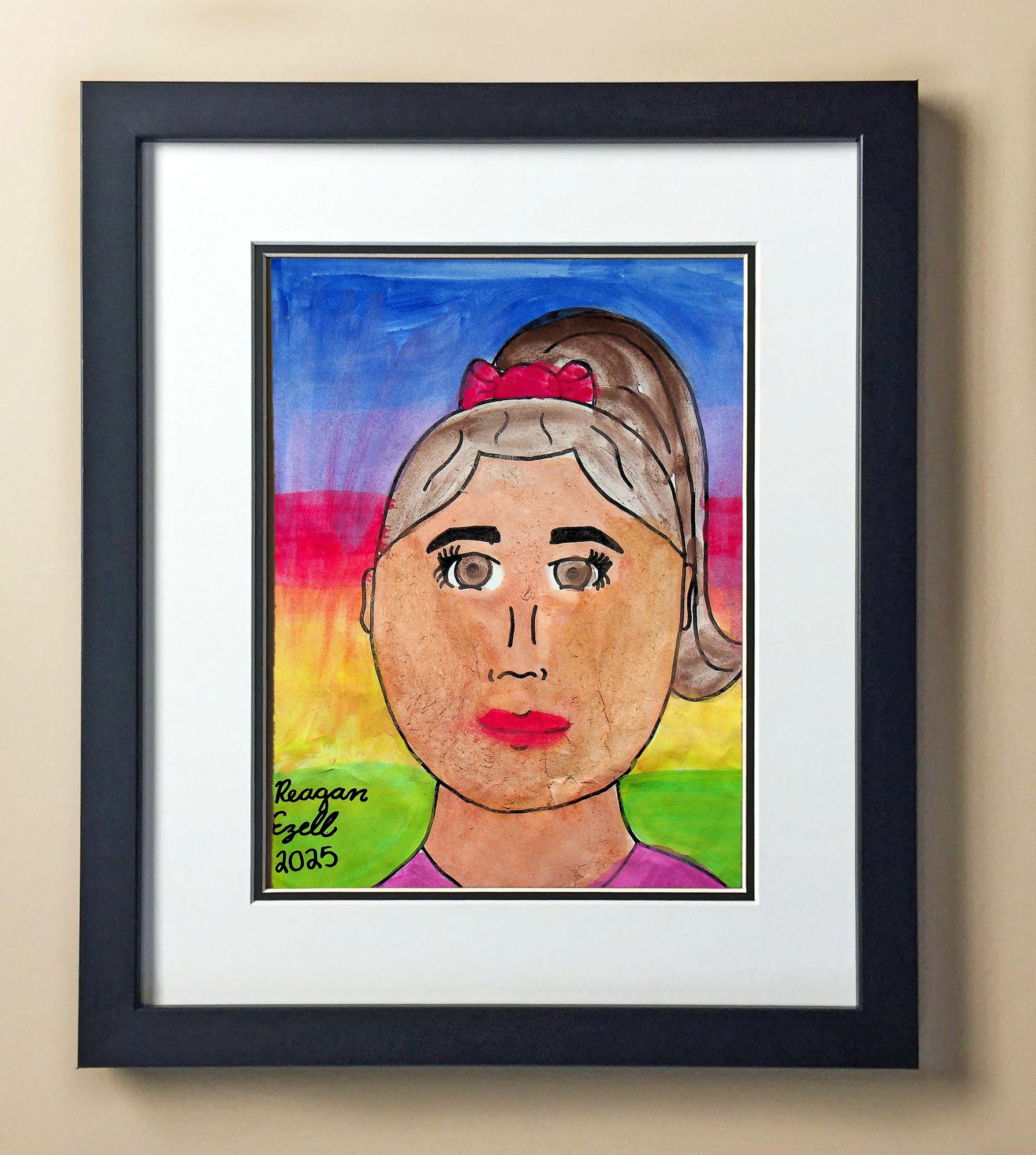 Included with the purchase is the Students Artwork, Frame, double matboard, shatter proof plexiglass, and a ready to hang backerboard with turnbuttons